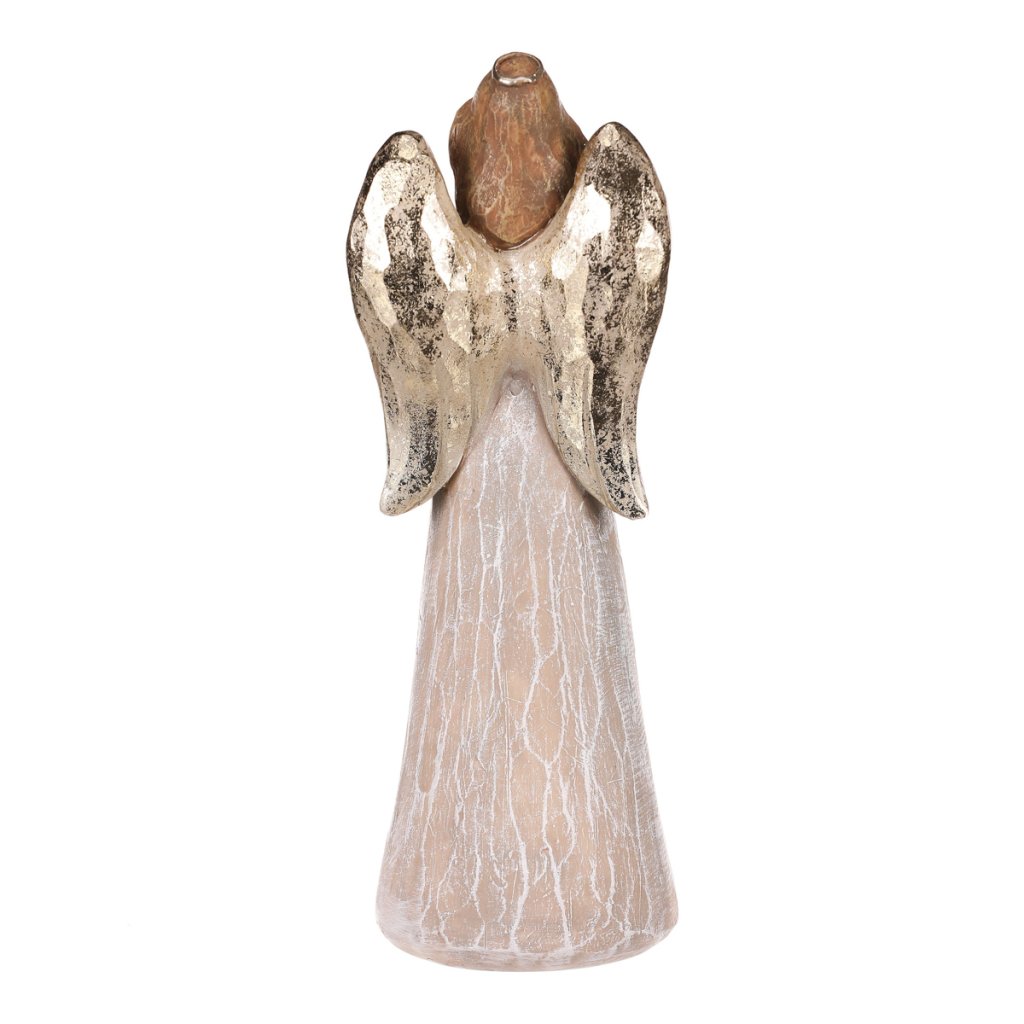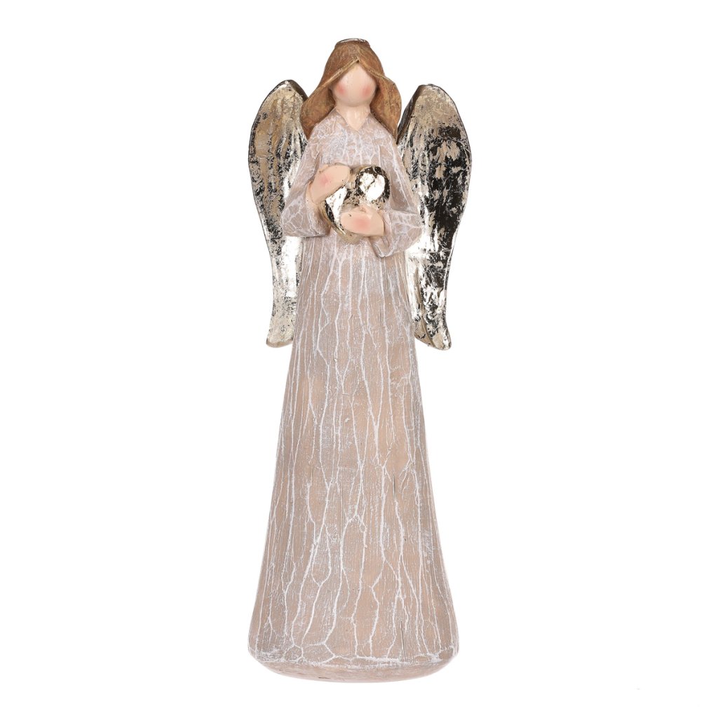 Elegantní dekorační soška anděla s hnědými šaty a jemnou imitací dřeva působí přirozeně a harmonicky. V rukou drží stříbrné srdce jako symbol lásky a ochrany. Díky výšce 25 cm...