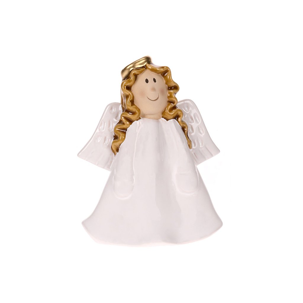 Podlehněte jemnosti a kráse této dekorační keramické sošky andělíčka v bílých šatech. Přidejte tím dotek s kombinací duchovnosti a elegance do vašeho prostoru a nechte jej vynikat na poličce, komodě nebo na jiném vhodném místě, kterému chcete dodat zvláštní význam. Anděl symbolizuje lásku a emocionální naplnění a jeho přítomnost vytváří atmosféru ochrany a péče, jenž nám připomíná důležitost porozumění a soucitu v našem životě. Ať už hledáte duchovní poselství, pocit klidu nebo prostě krásnou dekoraci, přidejte do svého prostoru tento výrazný symbol lásky a nechte se obklopit jeho magickým vlivem.