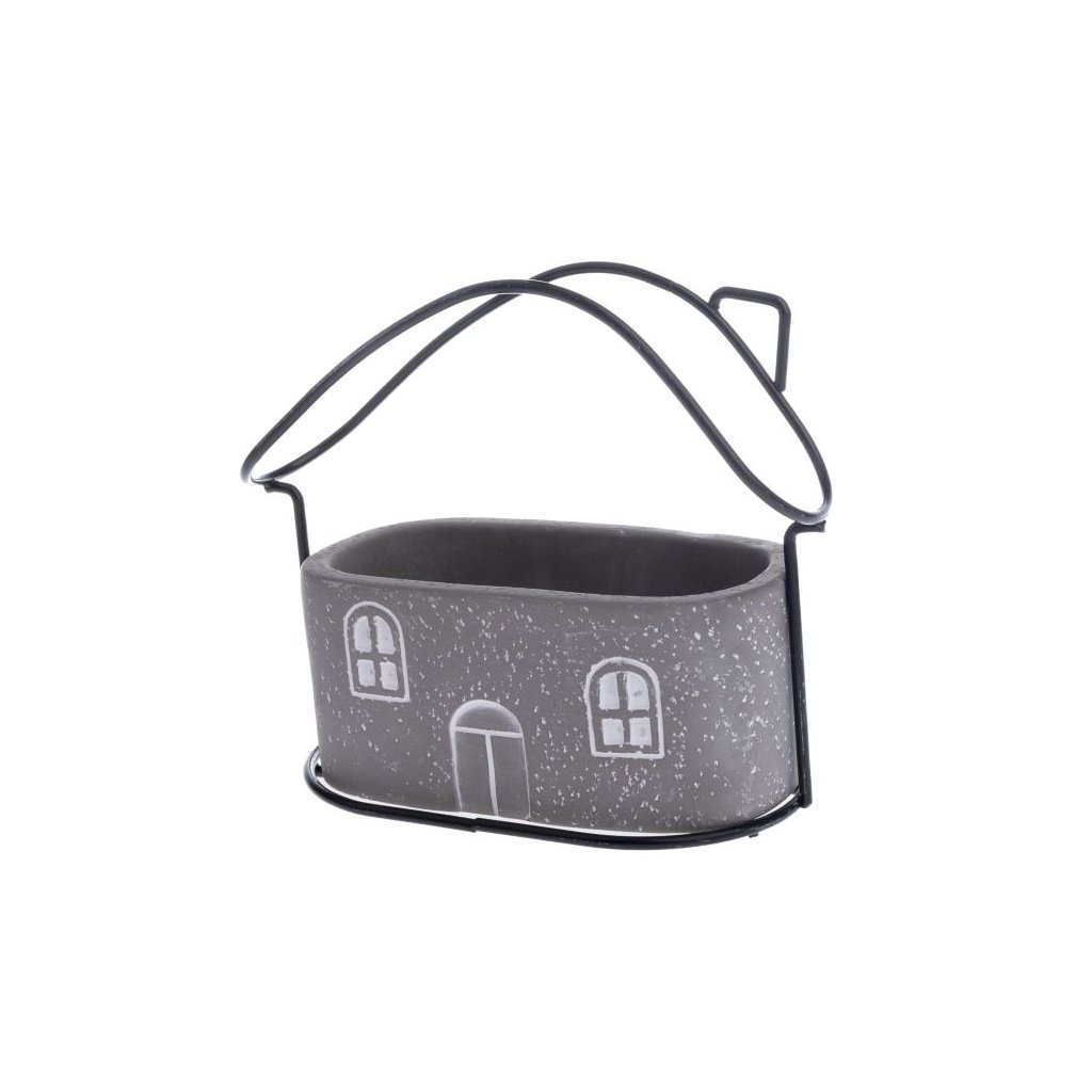 Betonový obal na květináč s kovovým domečkem