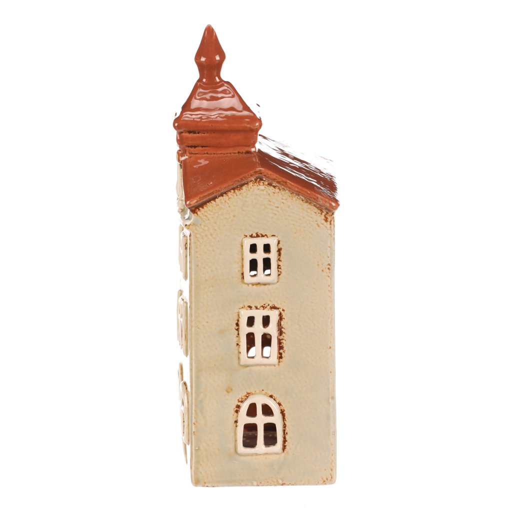 Keramický kostelík se světle hnědou fasádou a oranžovou střechou dodá vašemu domovu kouzelnou atmosféru. Má prostor pro čajovou svíčku, která po zapálení vykouzlí neodolatelný...