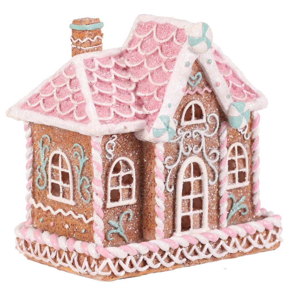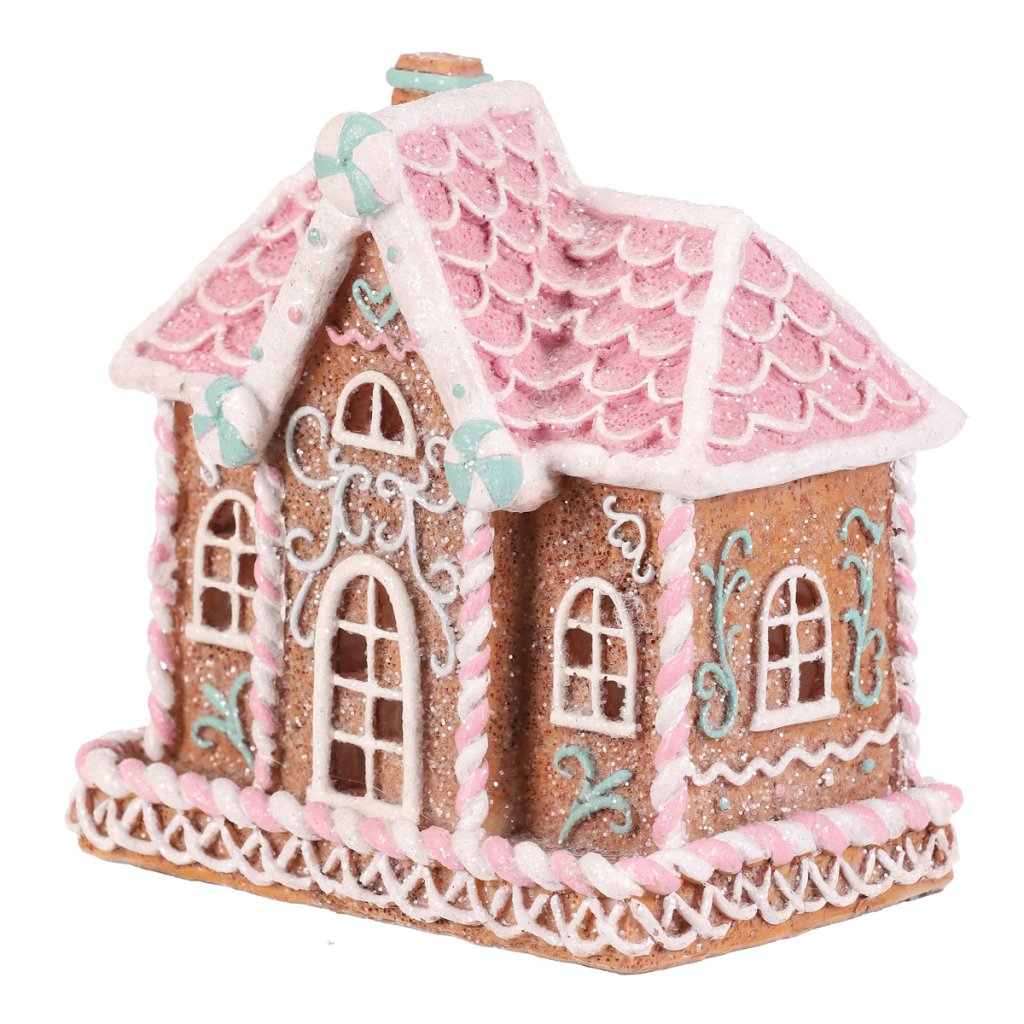Polyresinová stolní dekorace, v podobě zdobeného patrového domku v perníkovém designu, bude nádhernou dekorací pro kouzelné vánoční období. Vypadá jako by byl skutečně vytvořen z perníku a ozdoben sladkou barevnou polevou. To ale ještě není vše! Díky zabudovanému LED osvětlení uvnitř, si můžete po jeho rozsvícení vychutnávat pohled na nádherně rozptýlené paprsky, které vycházejí skrze všechna okénka ven.