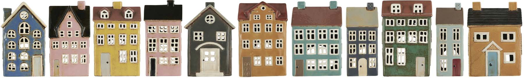 Keramické svícny jsou glazované a jsou určené pro čajovou svíčku, která se vkládá ze zadní strany domečku. Tlumené světlo svíčky pak krásně prosvítá okýnky a vytváří tu nejpříjemnější atmosféru, na kterou se budete těšit večer co večer. Svícny můžete různě kombinovat a vytvořit si tak vlastní řadu různě velkých a barevných domečků ❤️