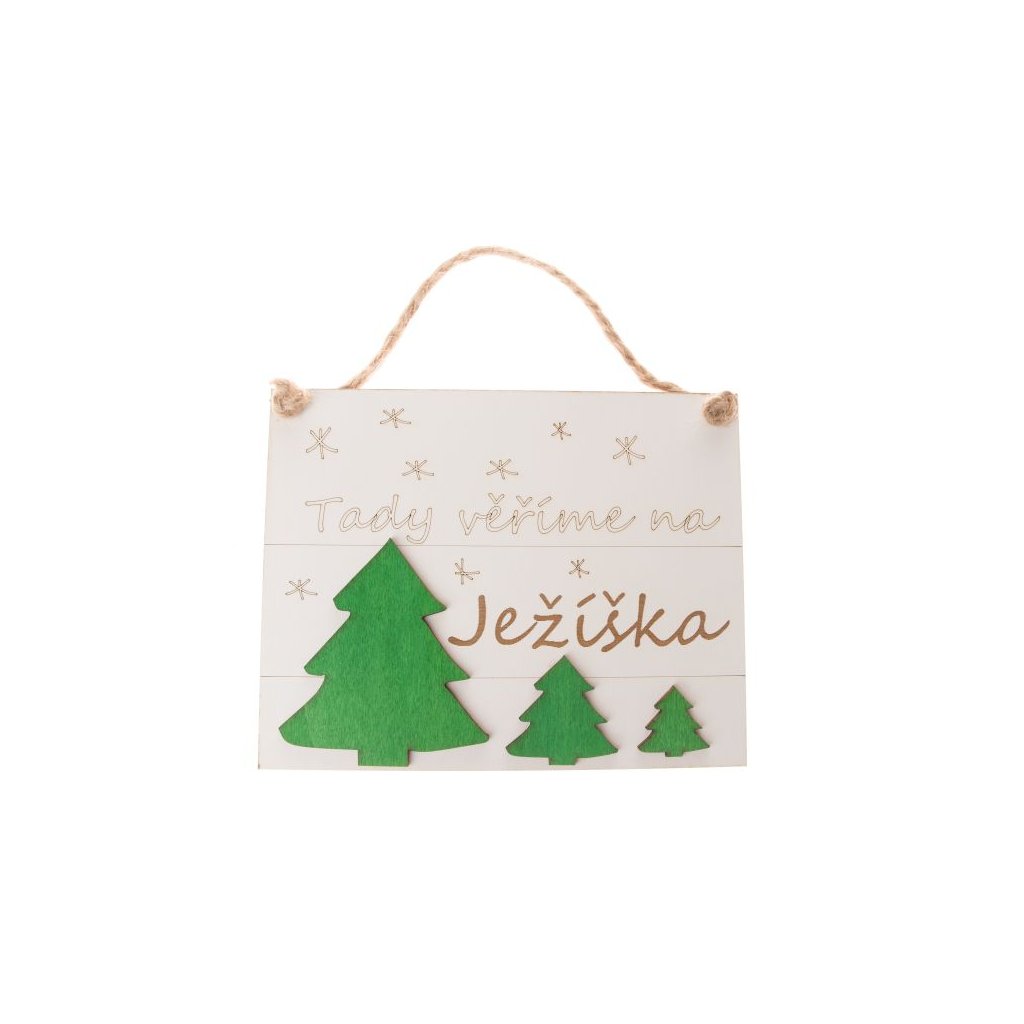 Dřevěná cedule - "Tady věříme na Ježíška"