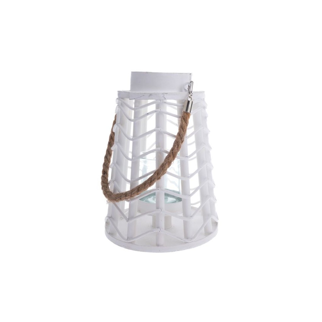 Dřevěná lucerna se sklem bílá