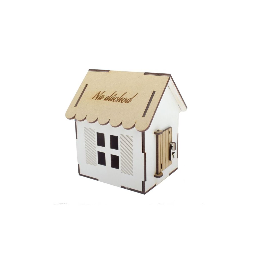 Dřevěný domek - pokladnička "Na důchod"
