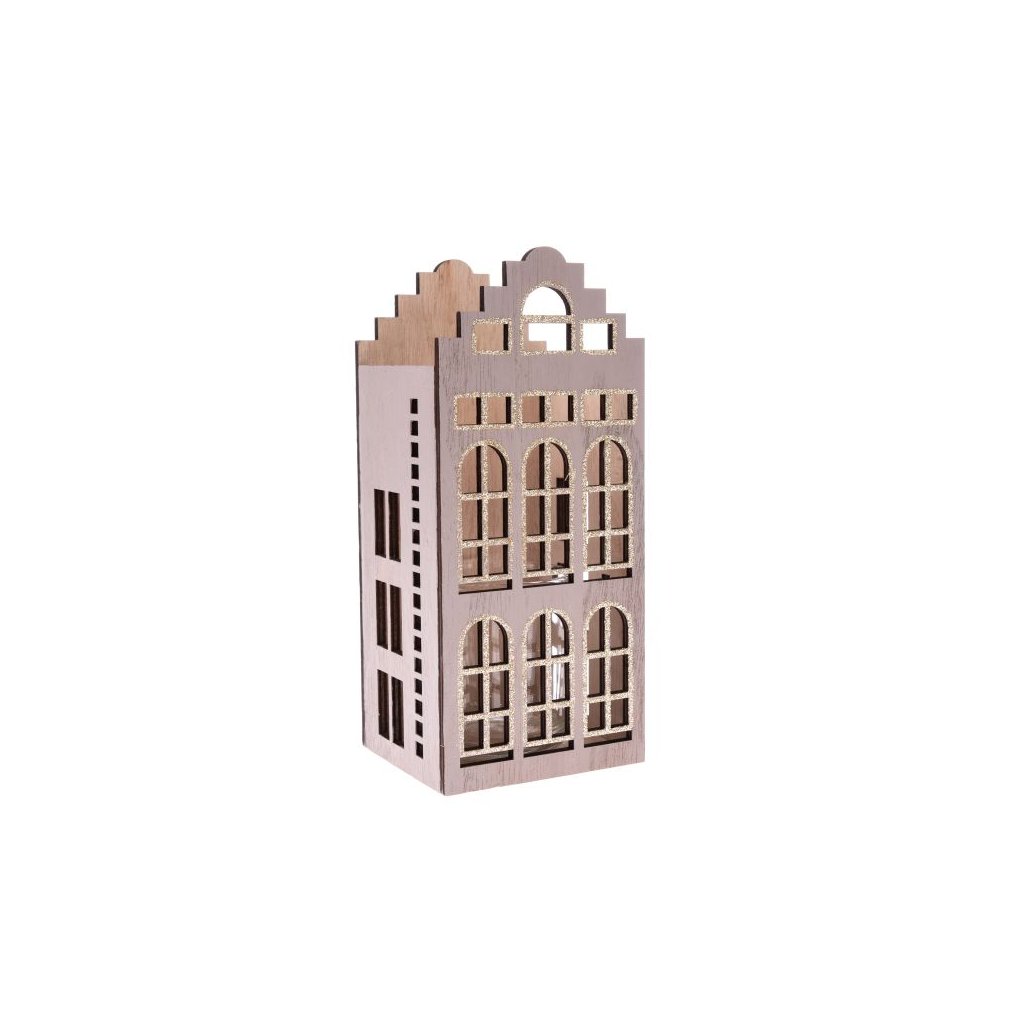 Dřevěný svícen se sklem - domek 8/16