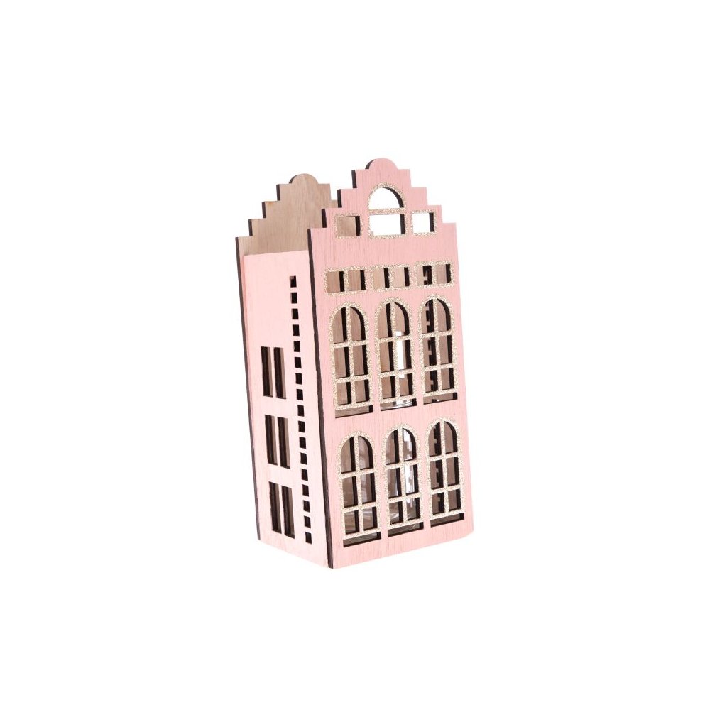 Dřevěný svícen se sklem - domek 8/16