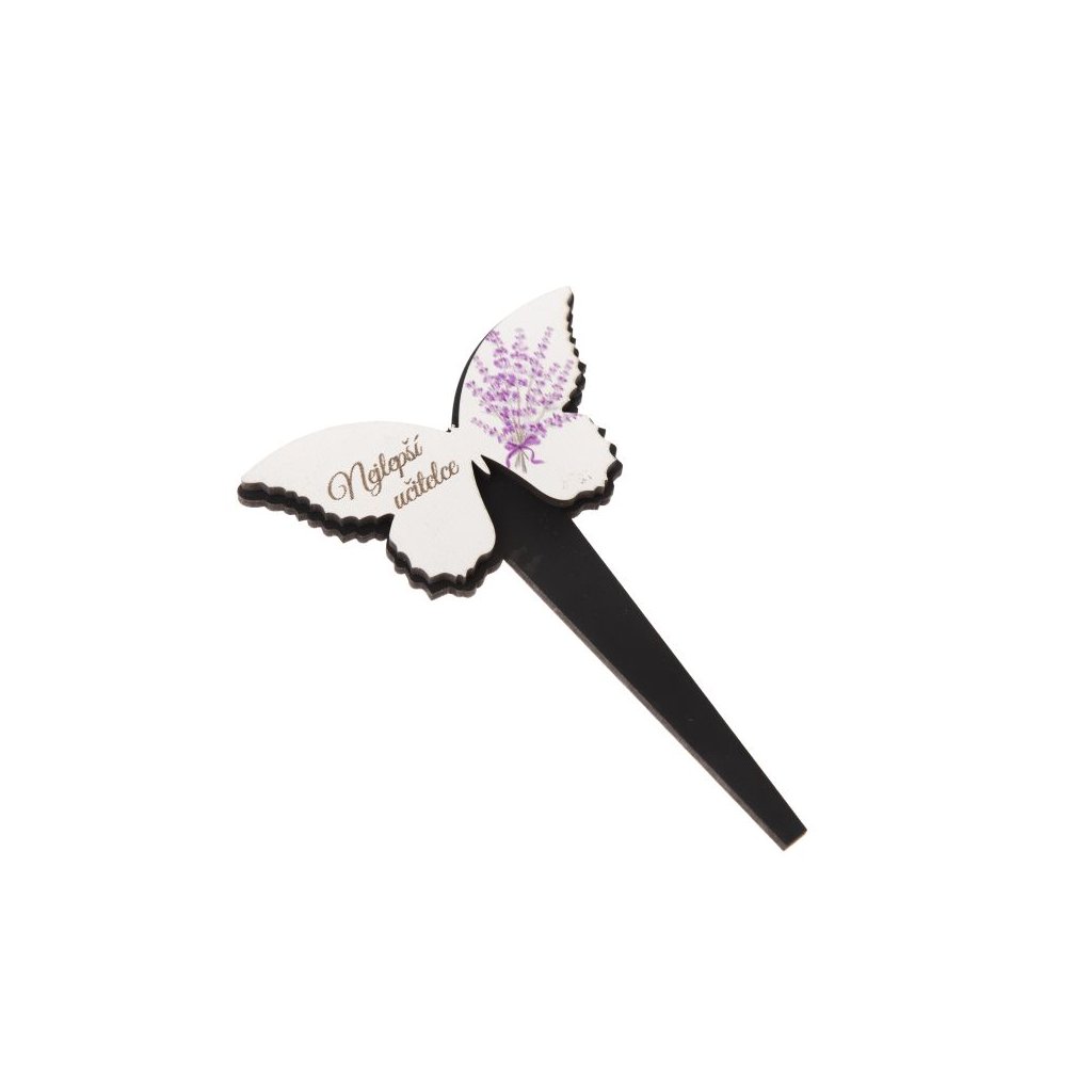 Dřevěný zápich motýl - levandule "Nejlepší učitelce" 0/50
