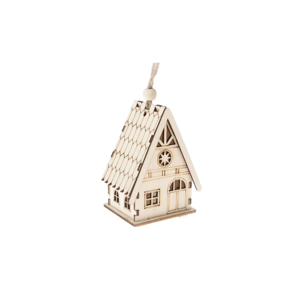 Dřevěný závěsný domek s LED světlem