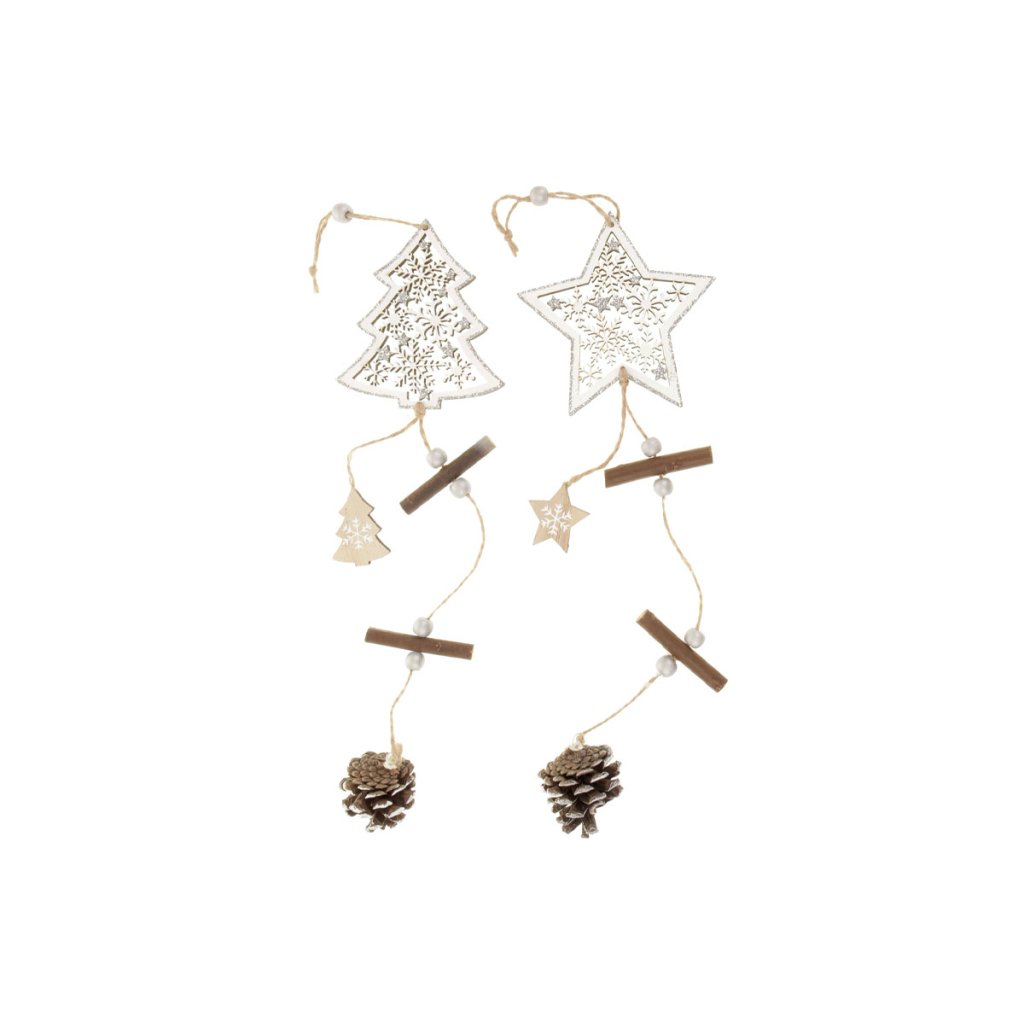Krásnou dřevěnou dekorací vytvoříte v interiéru kouzelnou vánoční atmosféru.Jedná se o ozdobnou hvězdičku nebo stromeček na pověšení ve formě kratších girland. Na konci každé z nich je jedna drobná borovicová šiška.