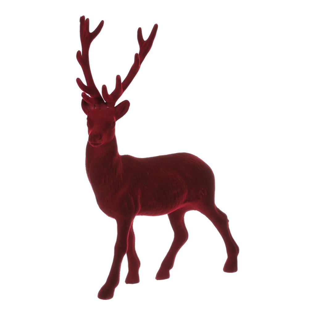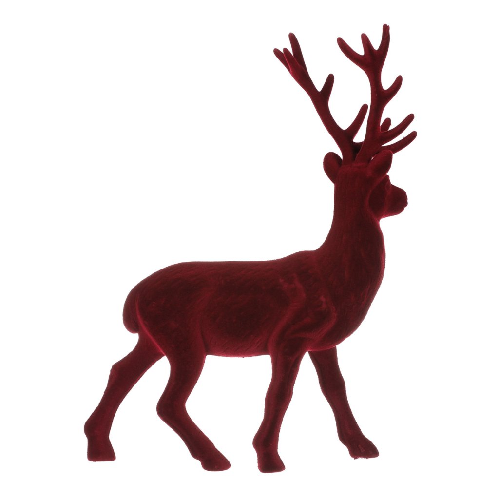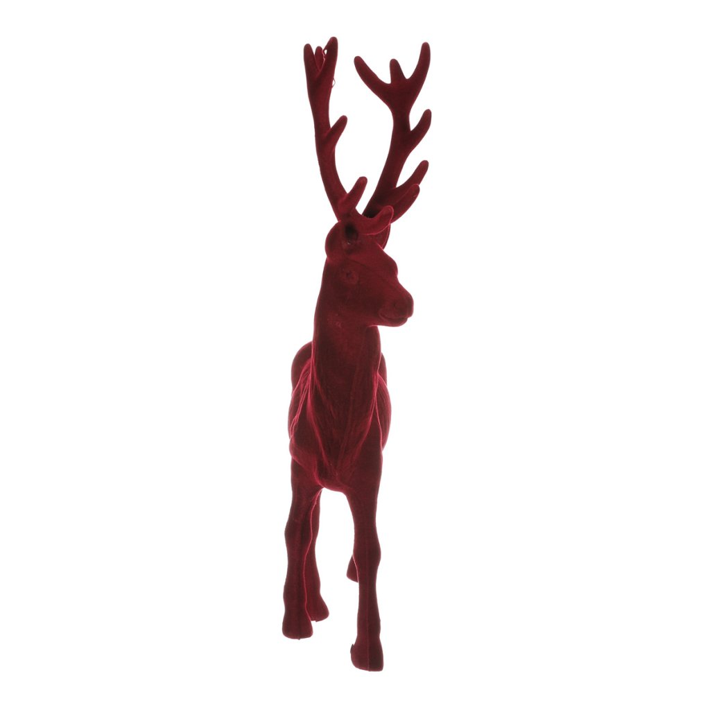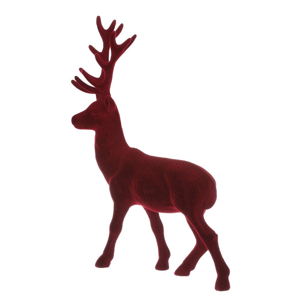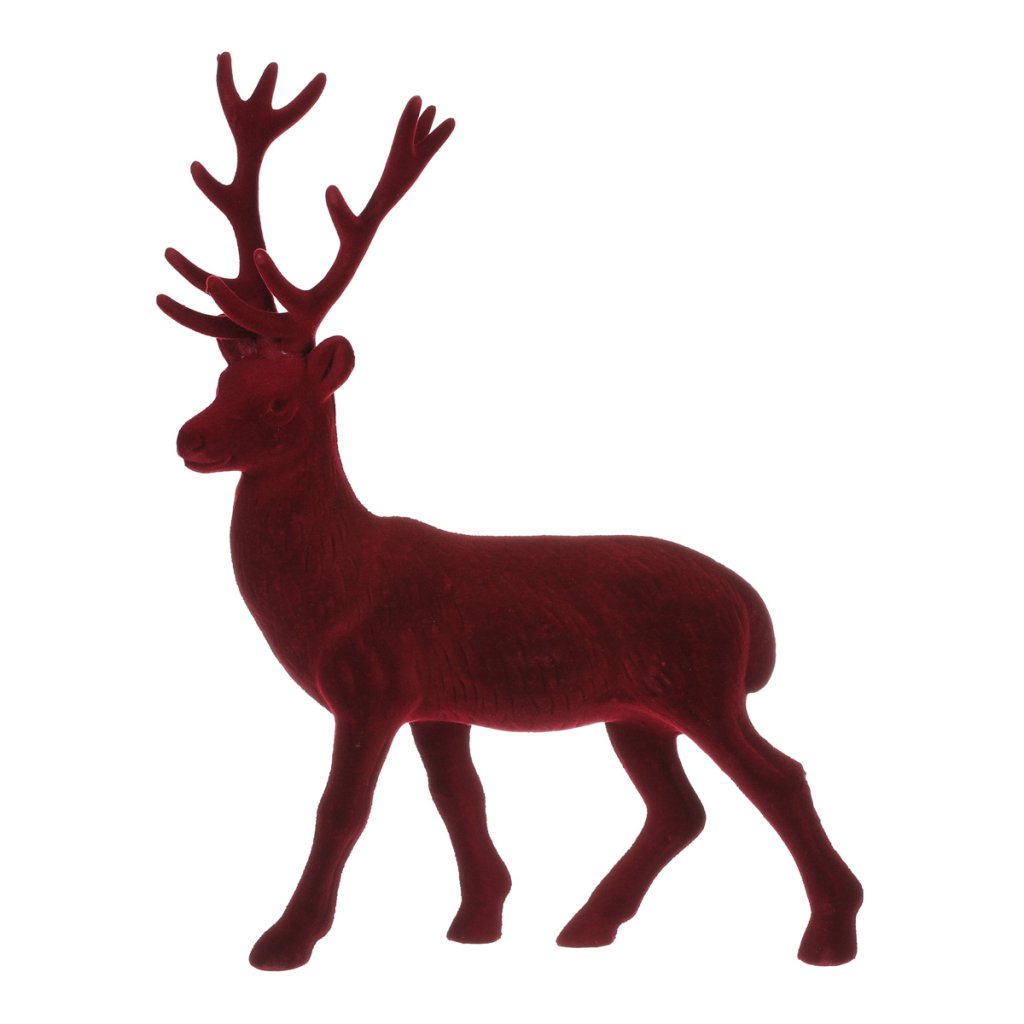 Jelen - vánoční figurka, semišový povrch, barva červená