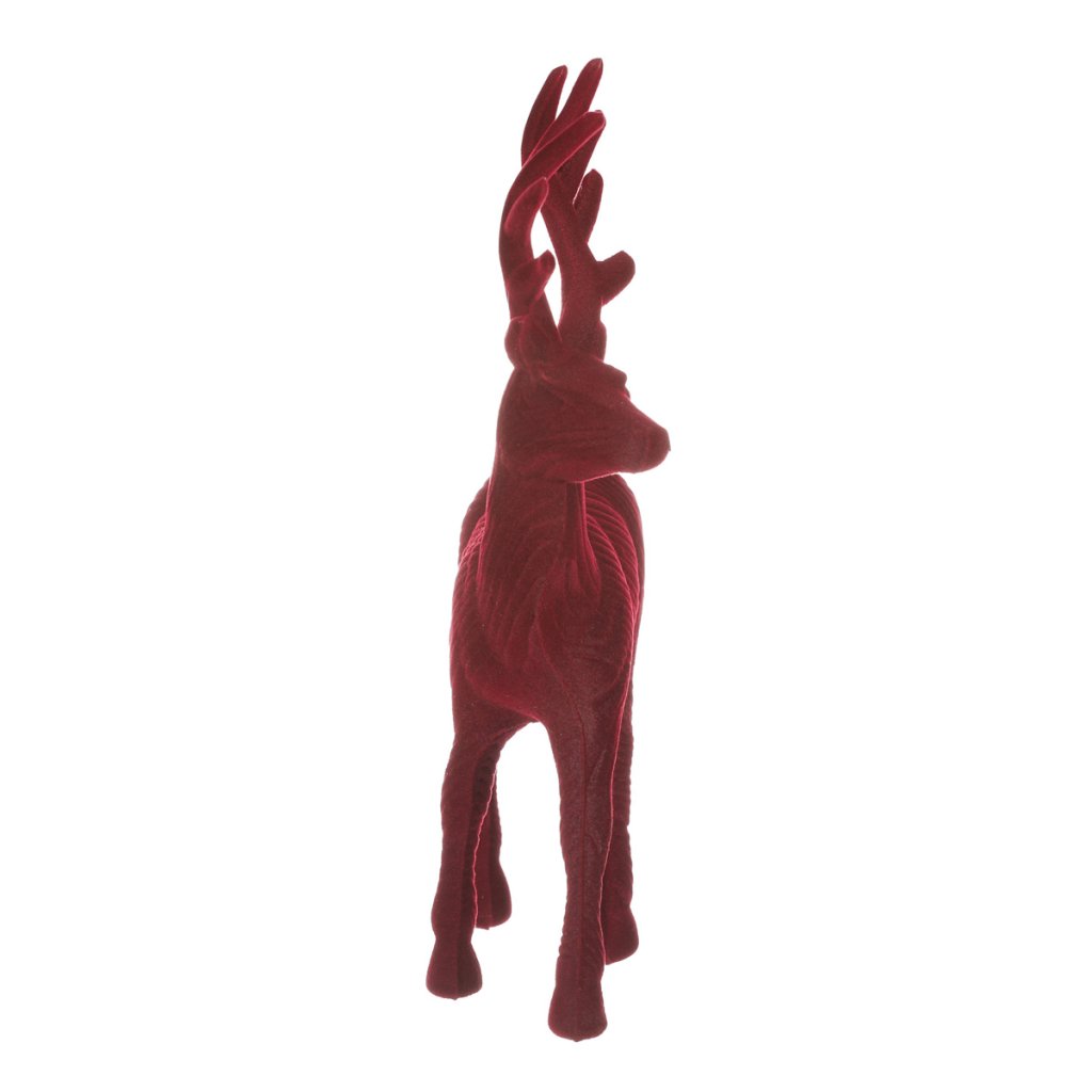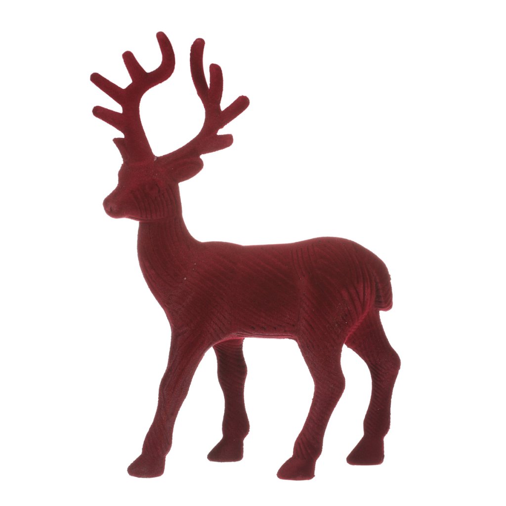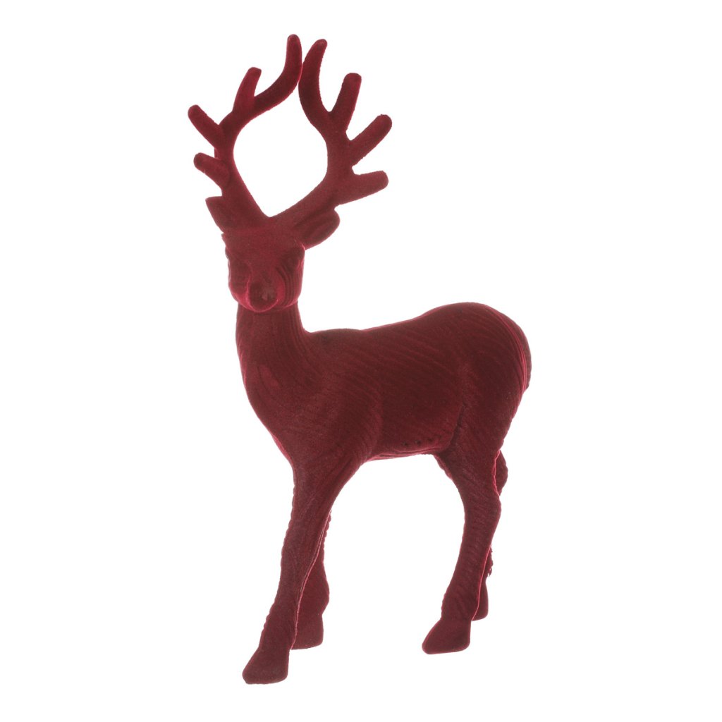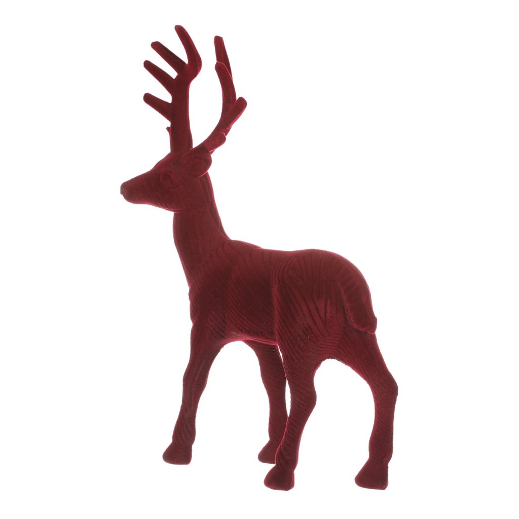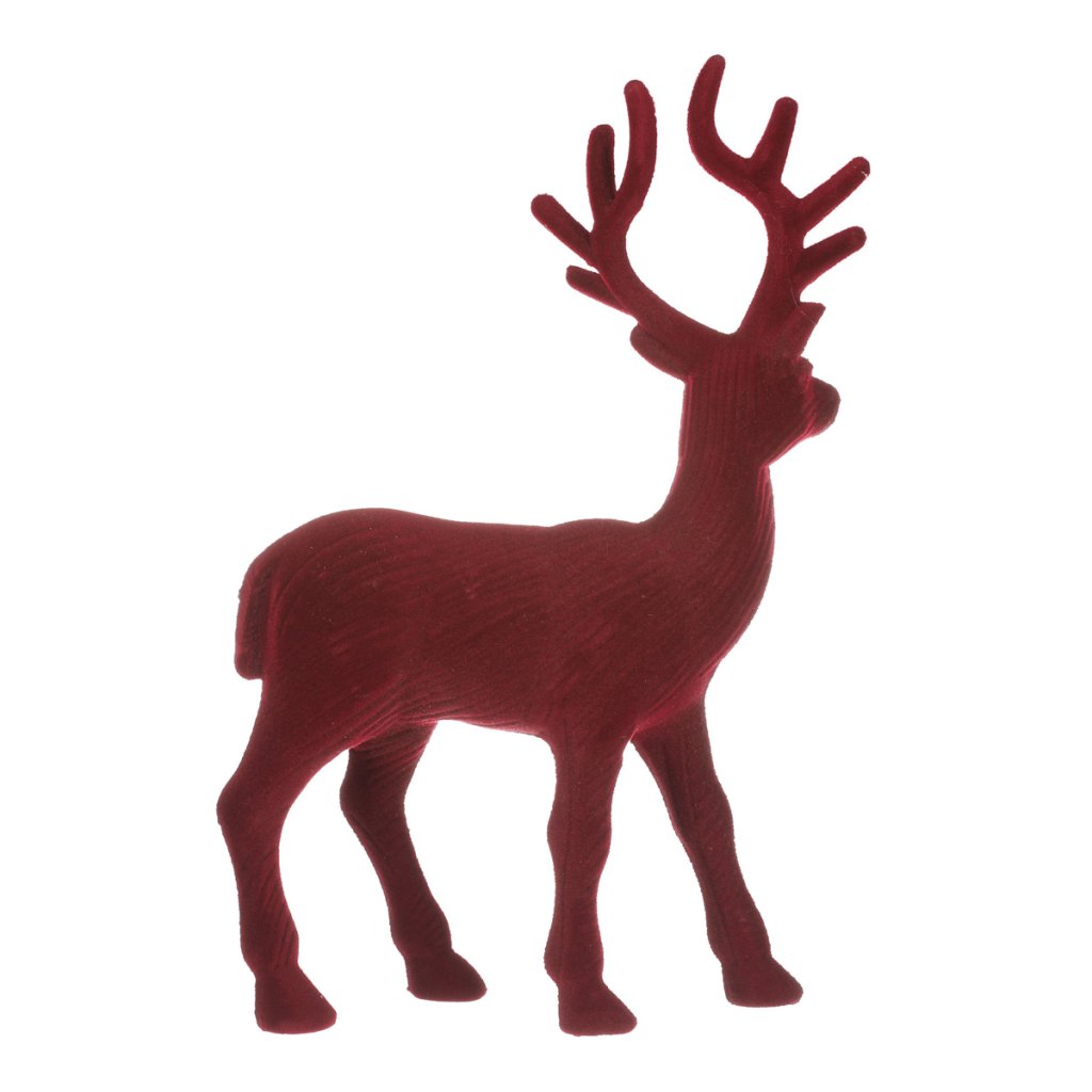 Jelen - vánoční figurka, semišový povrch, barva červená