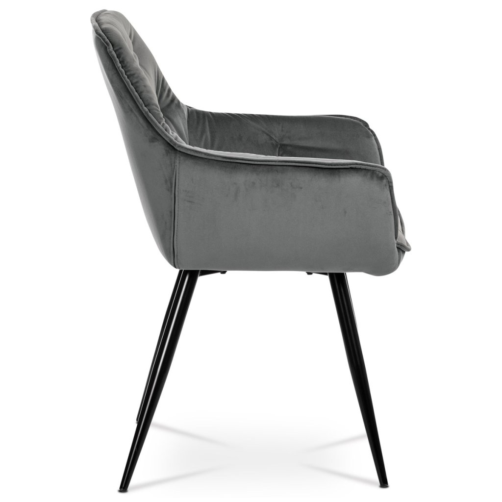 Jídelní židle, potah šedá sametová látka, kovová 4nohá podnož, černý lak