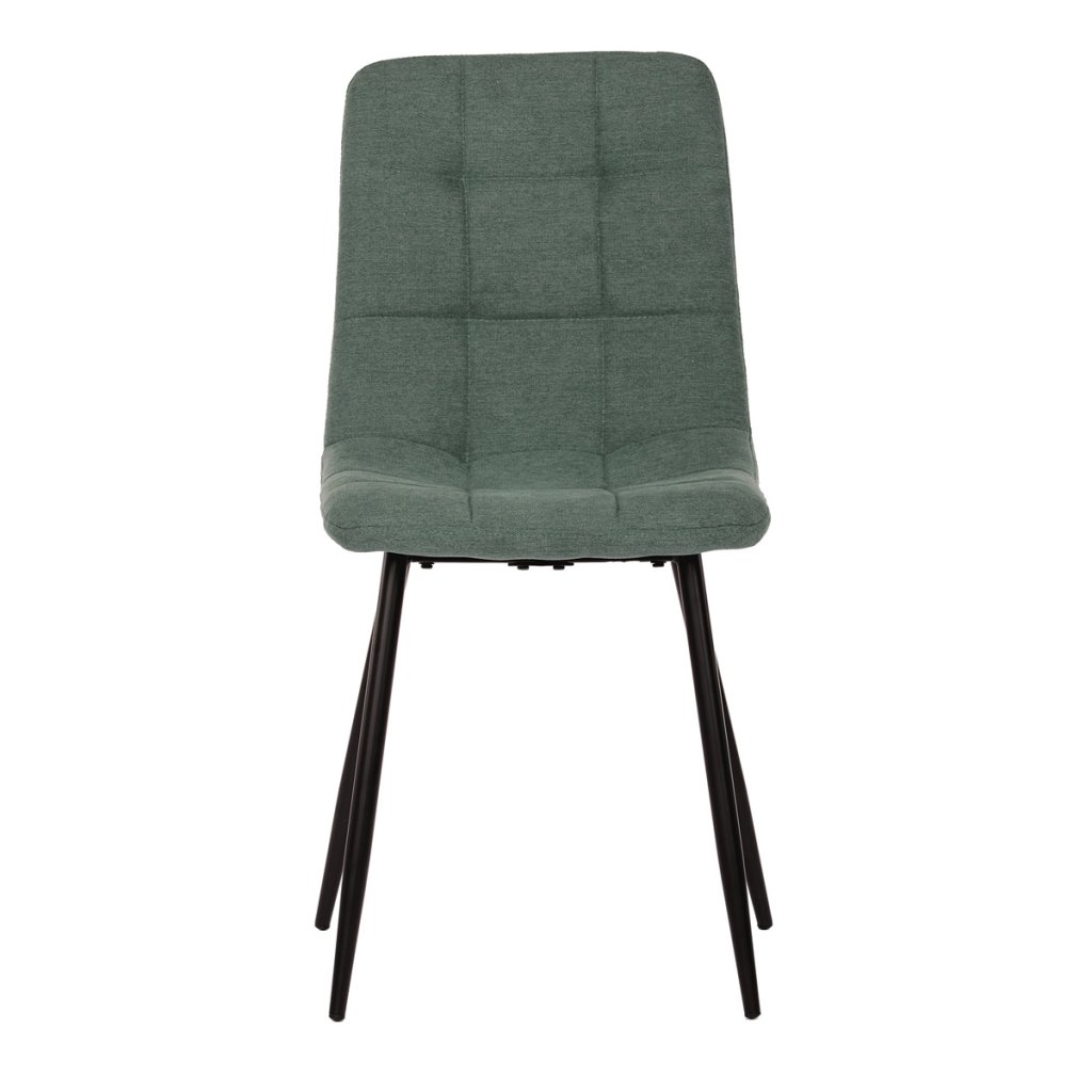 Jídelní minimalistická židle v industriálním stylu. Potah je z jemně hrubé látky v trendy rákosově zeleném odstínu. Velmi dekorativní a výrazné je čtvercové prošívání čelních ploch sedáku i opěradla s čalounickými vtahy.