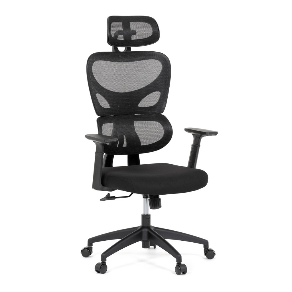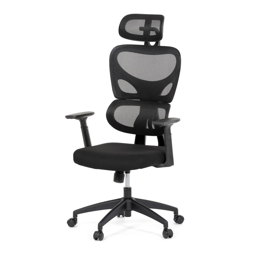 Kancelářská židle, černá síťovina, černý plast, kolečka na tvrdé podlahy