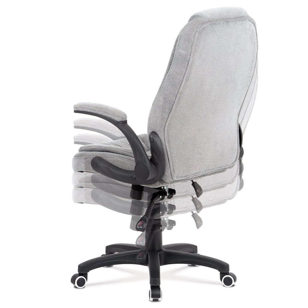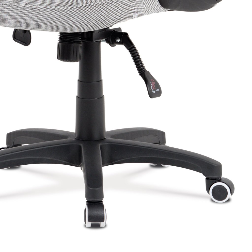 Moderní kancelářská židle potažená pololesklou šedostříbrnou látkou vzor pepito. Díky ultra pohodlnému sedáku a opěráku s výjimečným polstrováním, které jsou stylově tvarované, s elegantním prošitím a se super měkkým podhlavníkem se budete cítit jako v business class nejlepší letecké společnosti. Ruce si můžete pohodlně opřít o odklápěcí plastové područky stříbrné barvy s polstrováním potaženým extra jemnou látkou. Židle má také i snadno omyvatelný, tvrzený, plastový kříž stříbrné barvy s černými protiskluzovými prvky a plastovými kolečky vhodnými na tvrdé typy podlah (dlažba, parkety, plovoucí podlahy apod.). Židle je výškově nastavitelná, se synchronním mechanismem a předním šroubem upravujícím tuhost pohupu a její nosnost je až 120 kg. Látku čistit výhradně šamponováním běžnými čistícími prostředky za použití měkkého materiálu (houbička, hadřík). Nečistit hrubými materiály (kartáč, apod.). Nikdy nepoužívat chemická rozpouštědla. Látku nevystavujte přímému slunečnímu záření. Veškeré nečistoty je třeba odstraňovat ihned po ušpinění. Pozdním čištěním se úspěšnost zákroku výrazně snižuje. Látku nevystavujte přímému slunečnímu záření.