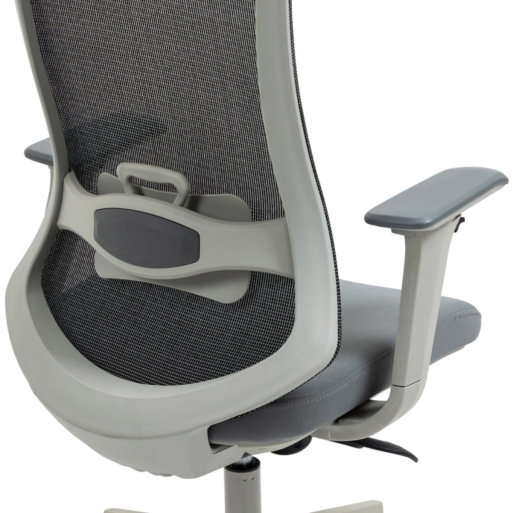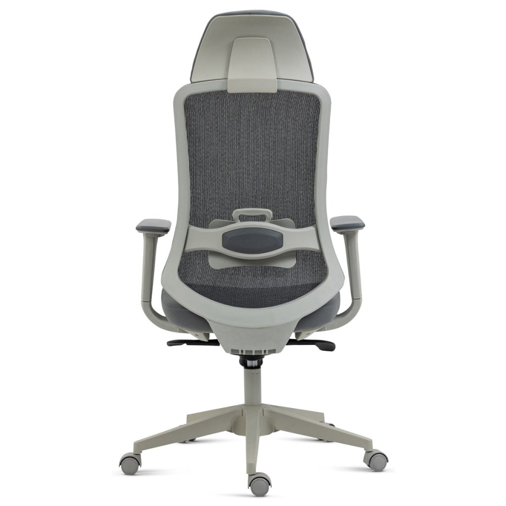 Kancelářská židle s vysokým opěrákem, čalouněným v prodyšném materiálu MESH, s nastavitelnou bederní opěrkou.