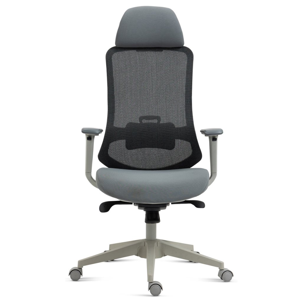 Kancelářská židle, šedý plast, šedá průžná látka a mesh, 4D područky, multifunkční mech.