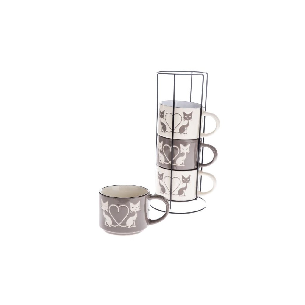 Keramické hrnečky v kovovém stojanu 4x300 ml 1/9