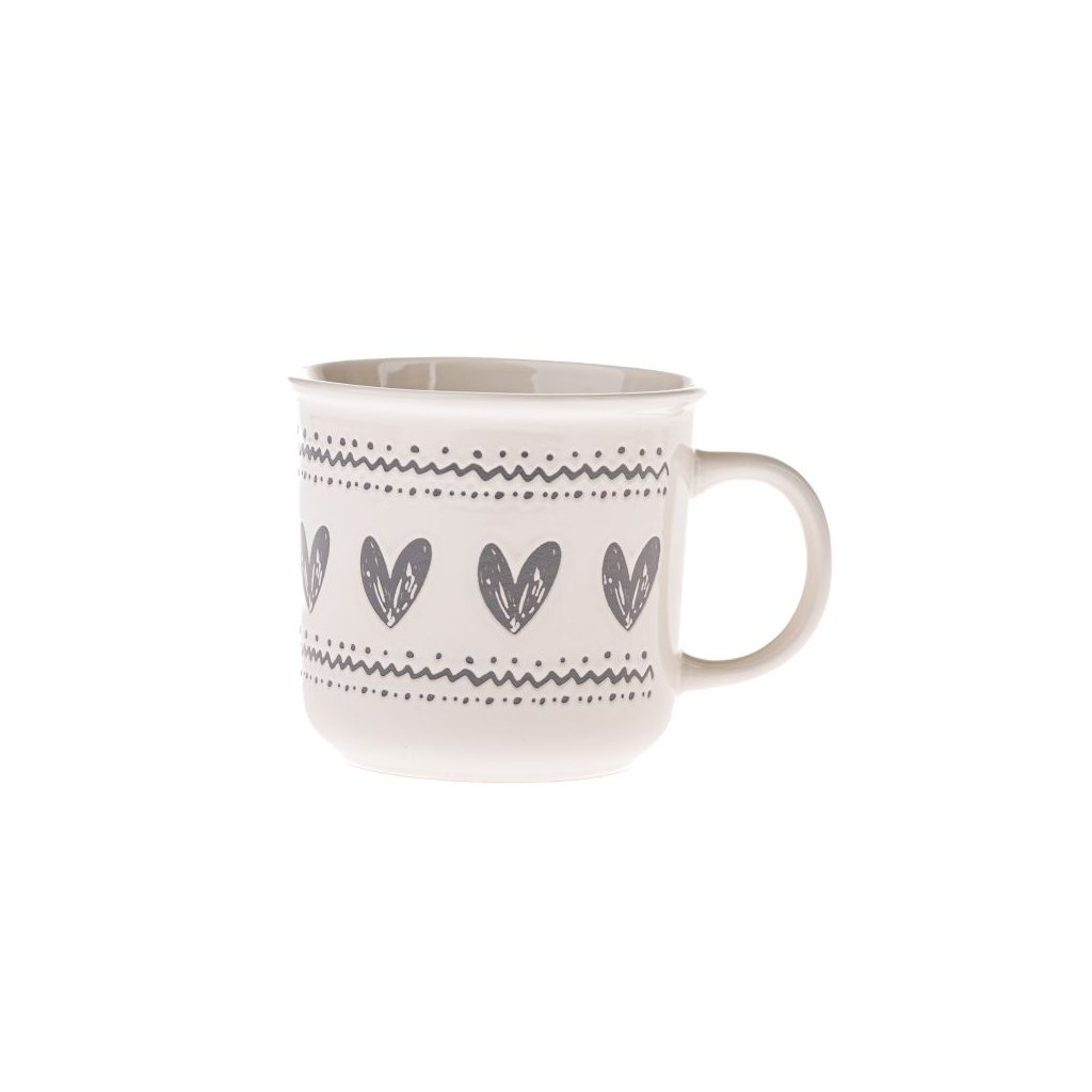 Keramický hrnek se srdci bílý se šedou 450 ml