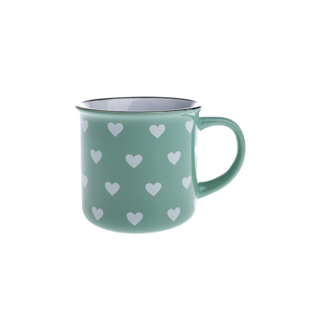 Keramický hrnek světle zelený s bílými srdíčky 400 ml