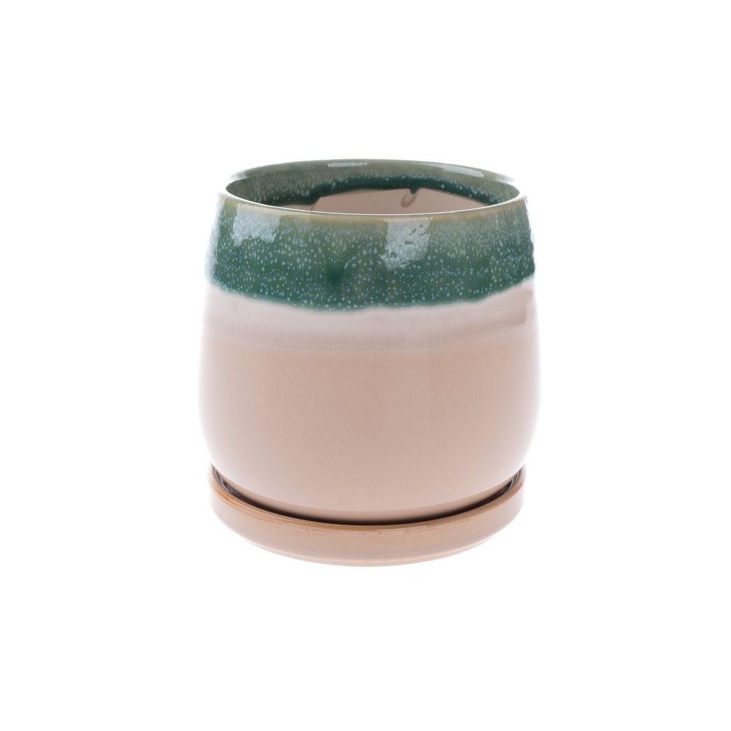 Keramický květináč s miskou zelený