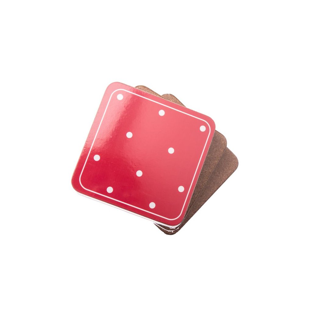 Korkové podložky pod šálek - červená s puntíky - sada 6ks