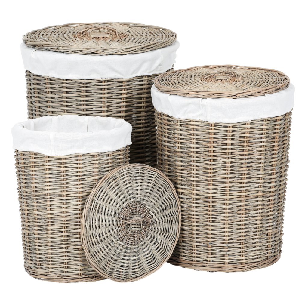 Koš proutěný - prádelní, s víkem, šedý, cena za sadu 3 ks