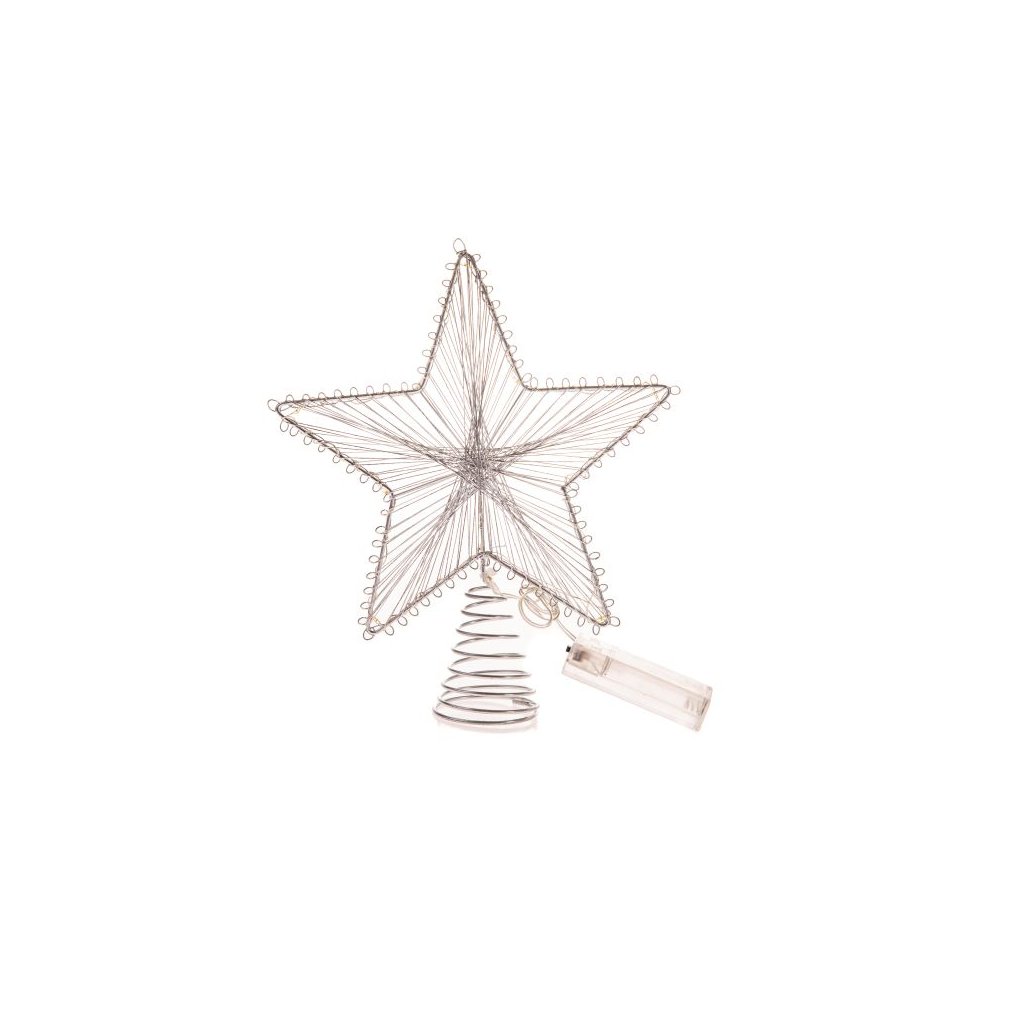 Kovová svítící špička na vánoční stromek 10 LED - hvězda