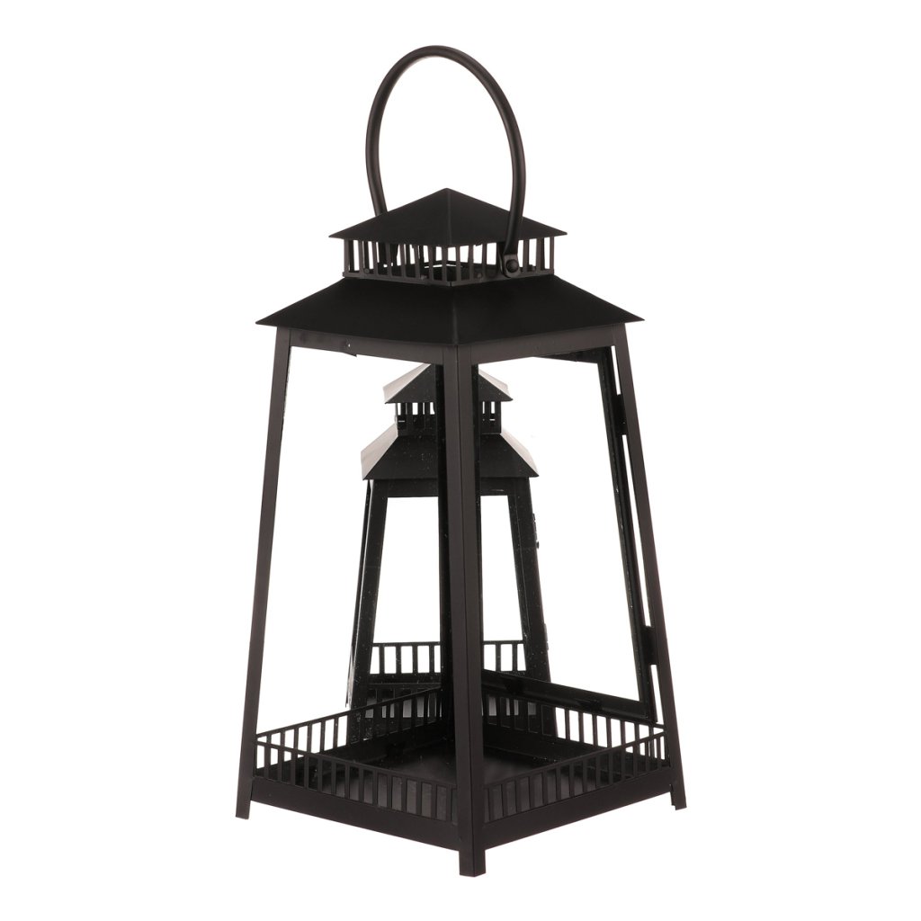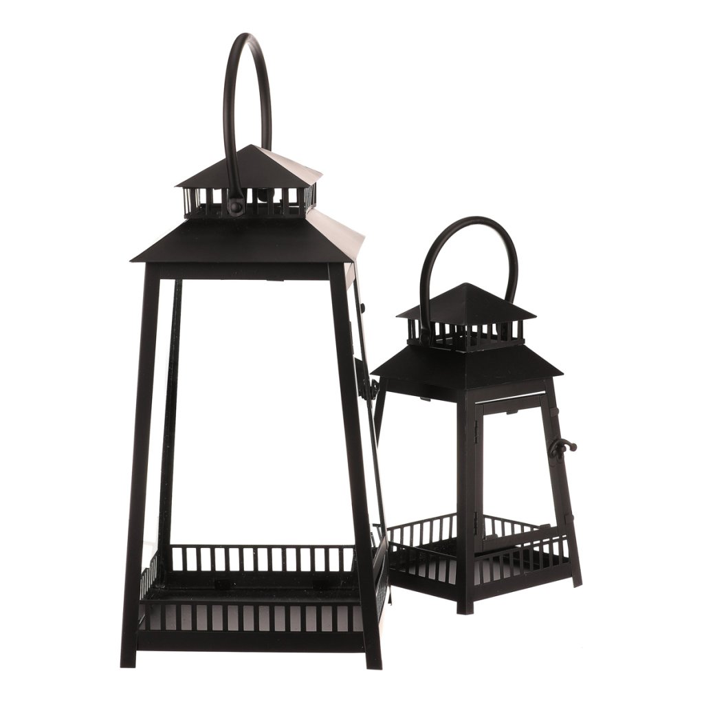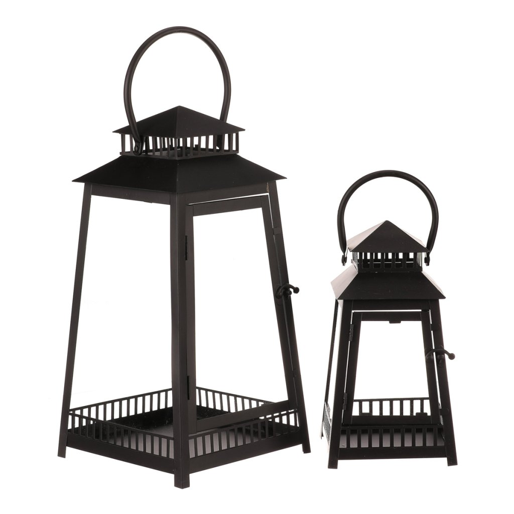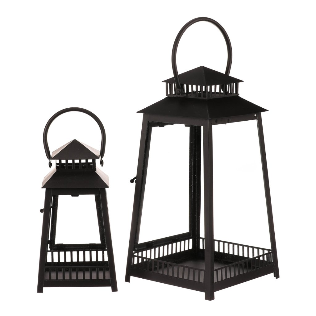 Lucerna kovová - čtyřboká, černá, cena za sadu 2 ks