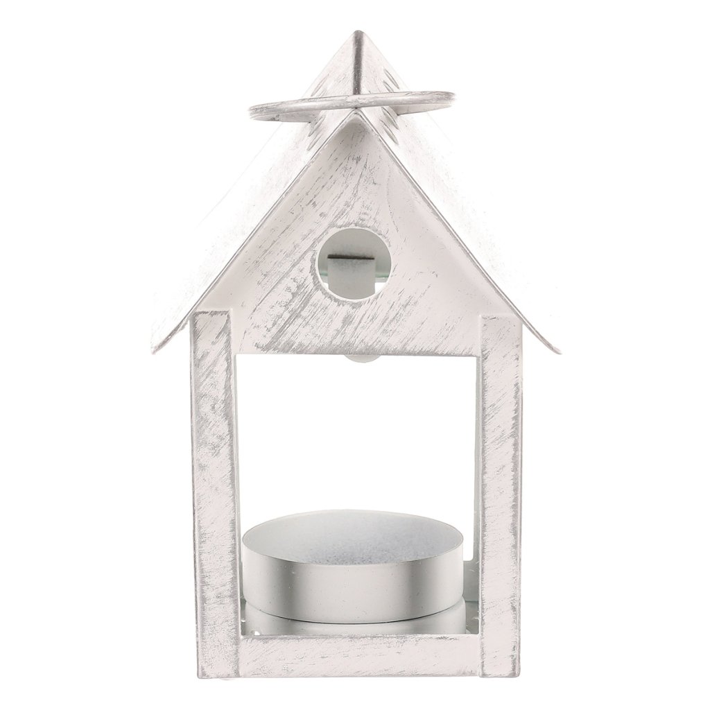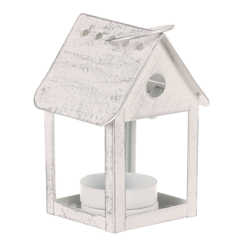 Tato malá kovová lucerna v bílé barvě se díky svým malým rozměrům hodí i do míst s omezeným prostorem. Vypadá jako malá ptačí budka a uvnitř je místo tak akorát na čajovou svíčku. Ke stříšce je připevněno kovové kolečko, za které je možné lucerničku pověsit. Lze ji taktéž jednoduše postavit třeba na okenní parapet, stůl, římsu a další viditelné místa.