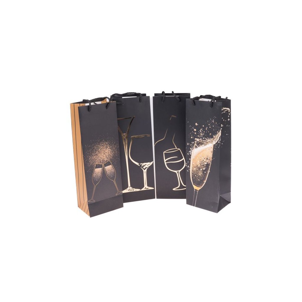 Papírová taška na 1 lahev (mix motivů sekt) - sada 12ks 1/80