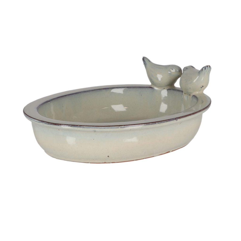 Pítko pro ptáčky keramické oválné, bílé 23x30 cm