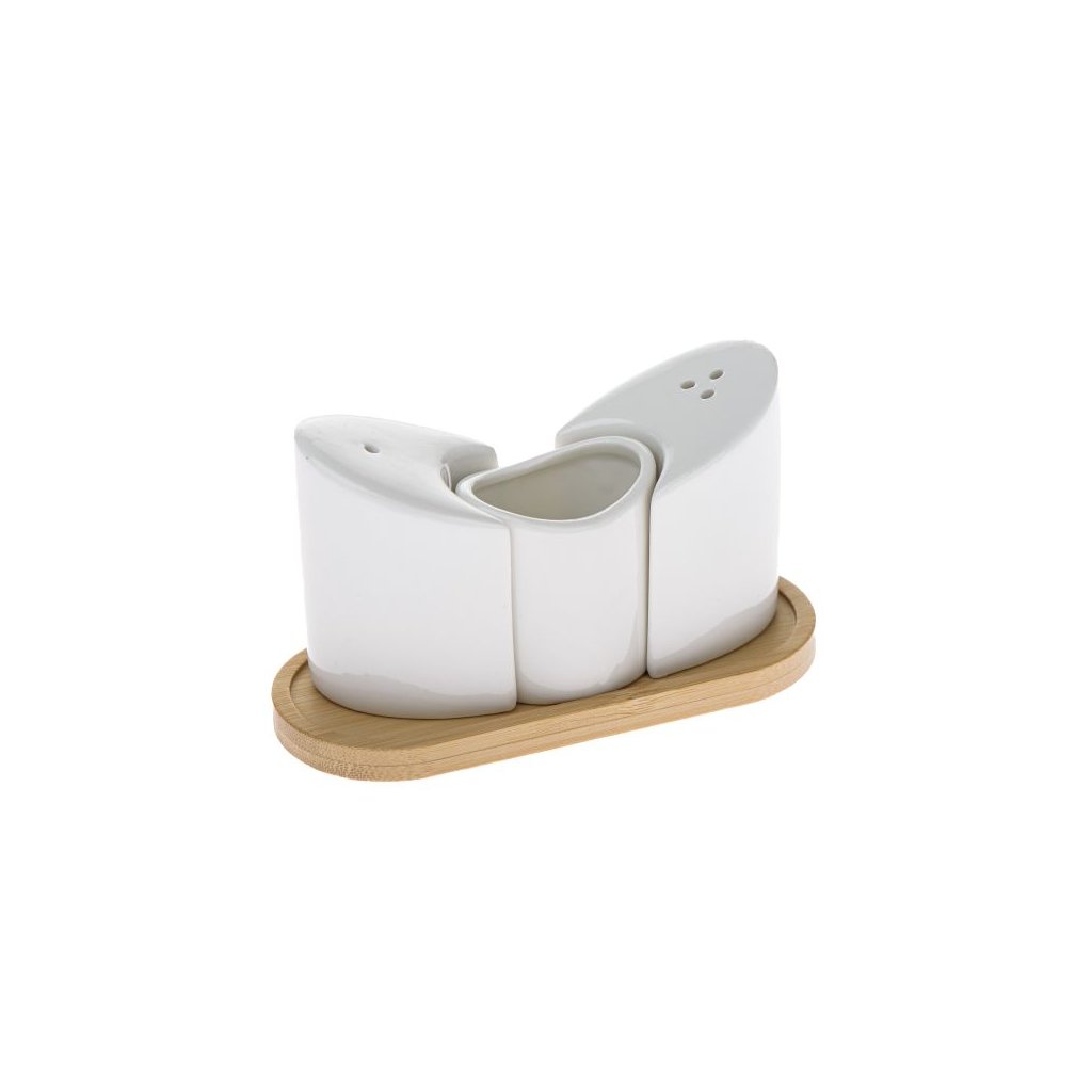 Porcelánová slánka a pepřenka na bambusovém tácku