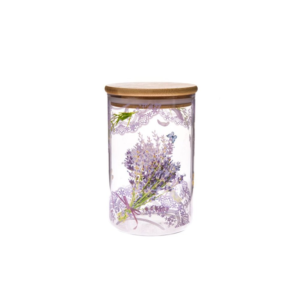 Skleněná doza s bambusovým víčkem - levandule 840 ml