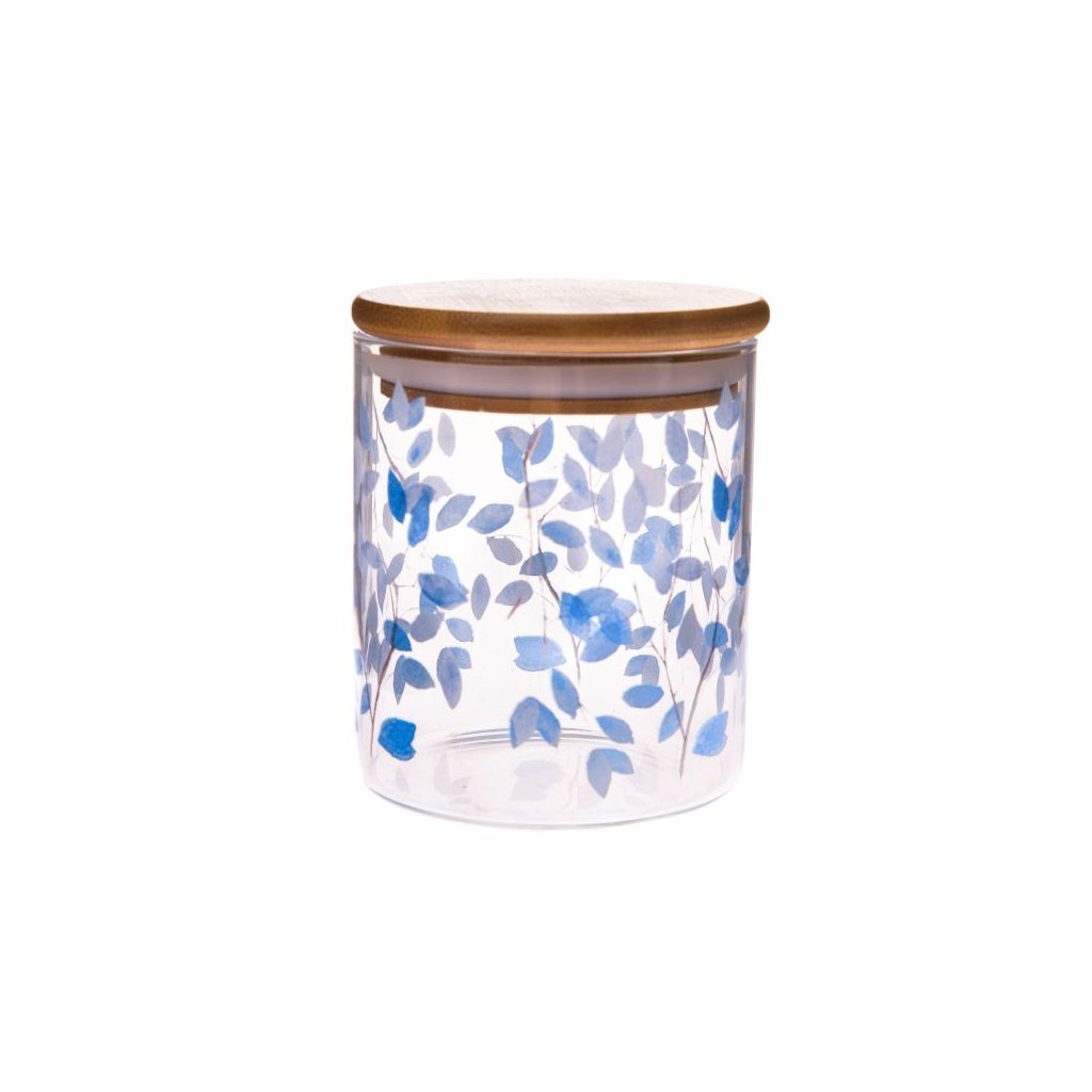 Skleněná doza s bambusovým víčkem - modré květy 440 ml