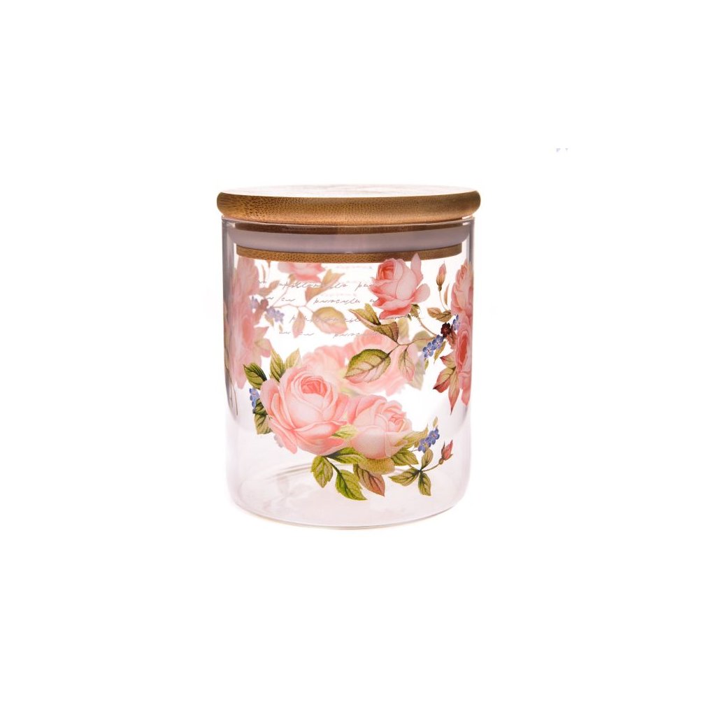 Skleněná doza s bambusovým víčkem - růže 440 ml