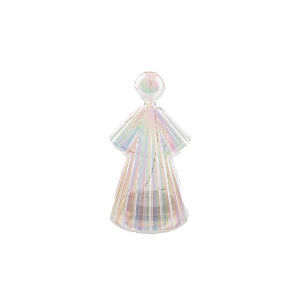 Skleněný LED svítící anděl 14 cm - duhový finiš