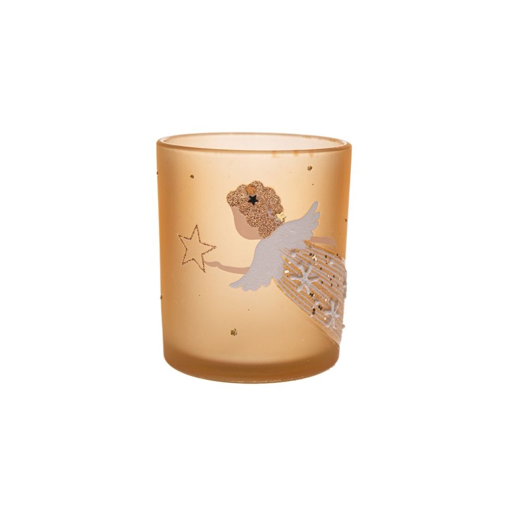 Skleněný svícen s andělem 10 cm