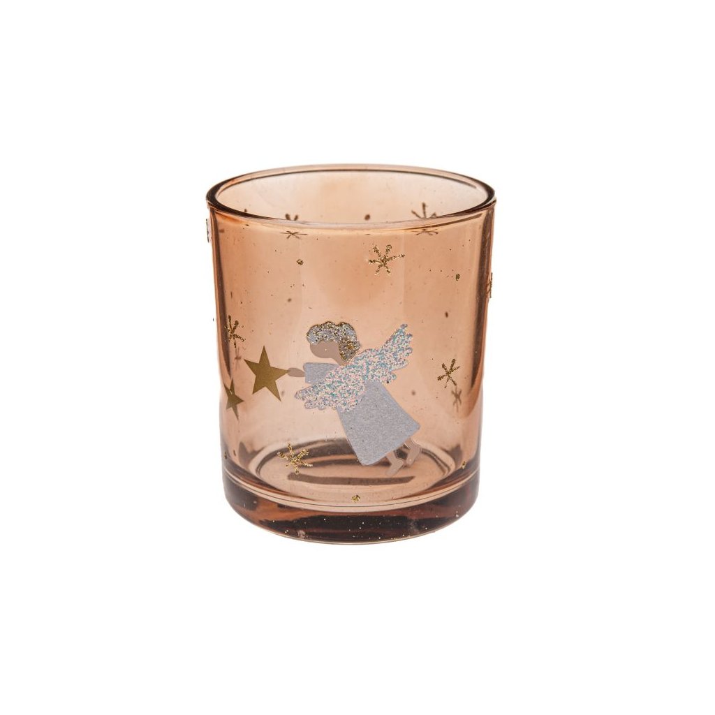 Skleněný svícen s andělem 10 cm