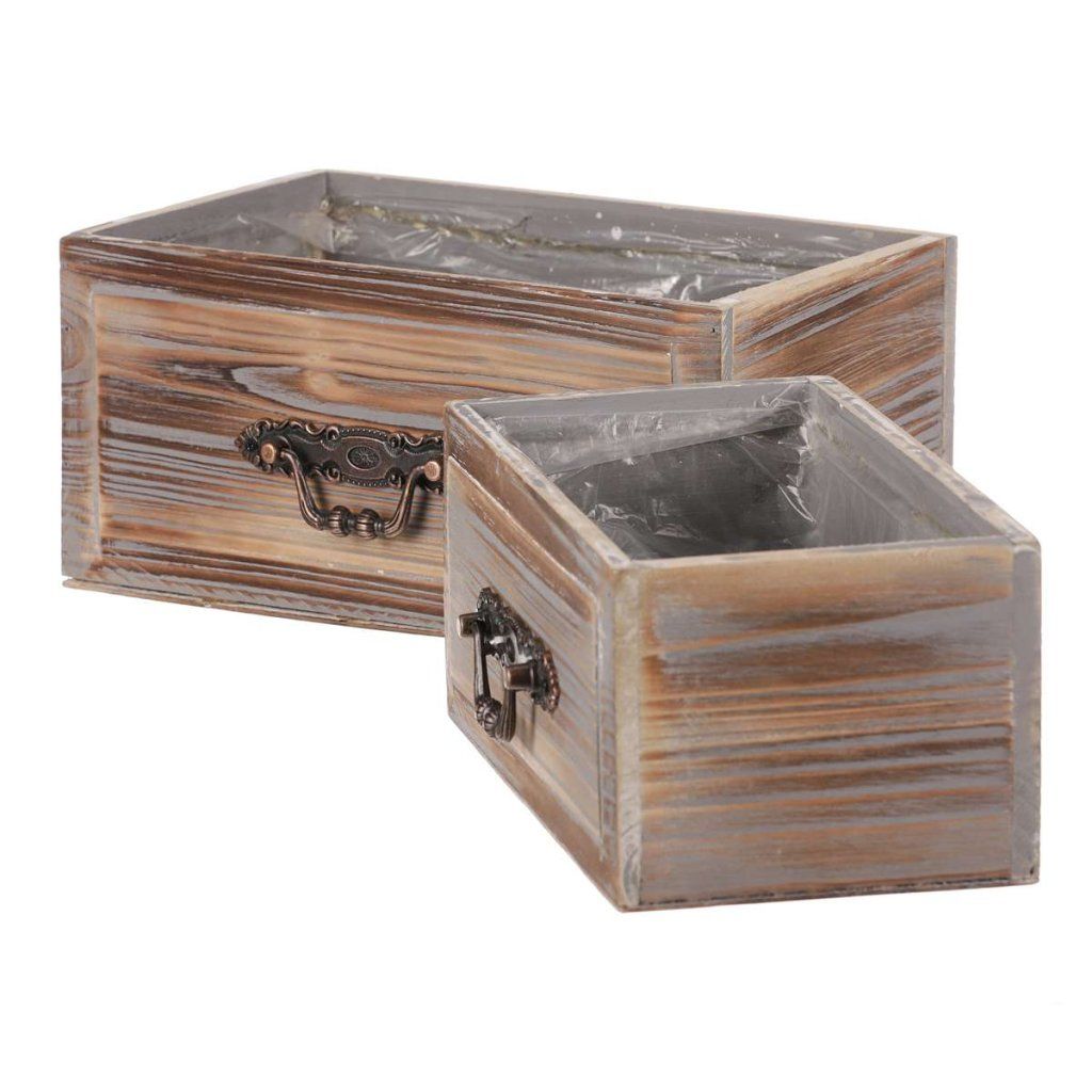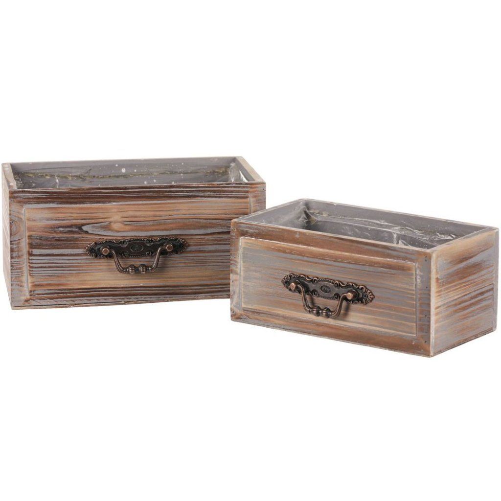 Obal na květiny v podobě dřevěného šuplíku je jedinečným dekoračním doplňkem, který dodá vašim květinám fantastický vzhled. V nabídce je sada dvou různých velikostí. Vypadá jako starožitný kus nábytku se zdobeným kovovým madlem, čímž vnesete do prostoru nádech historie a tradice. Barva přírodního dřeva se zbytky šedého nátěru působí až nostalgickým dojmem.