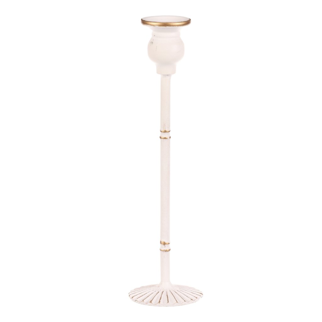 Svícen kovový - 30 cm, na kónickou svíčku, bílý