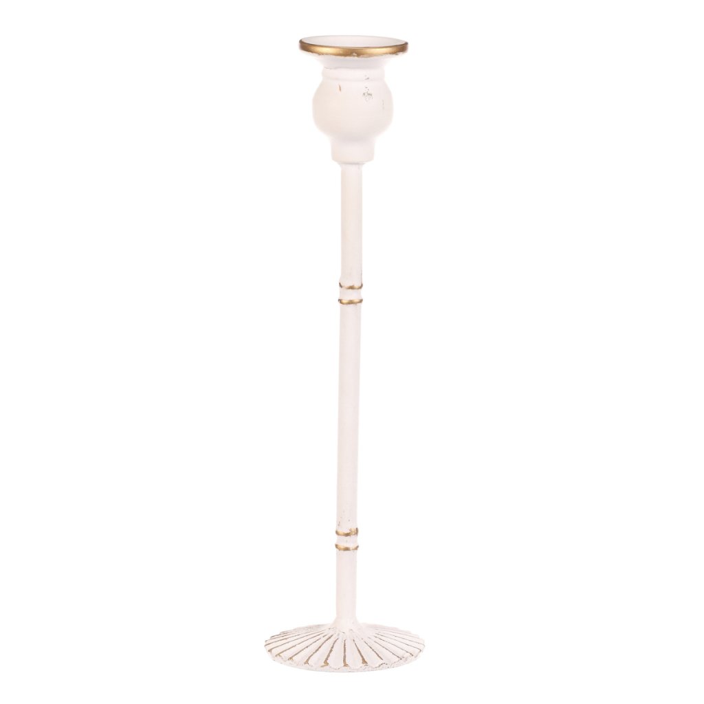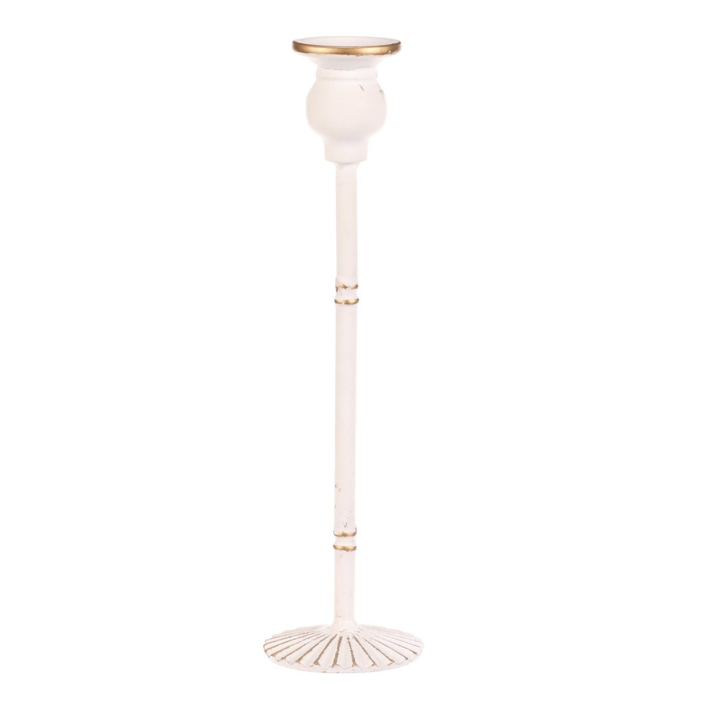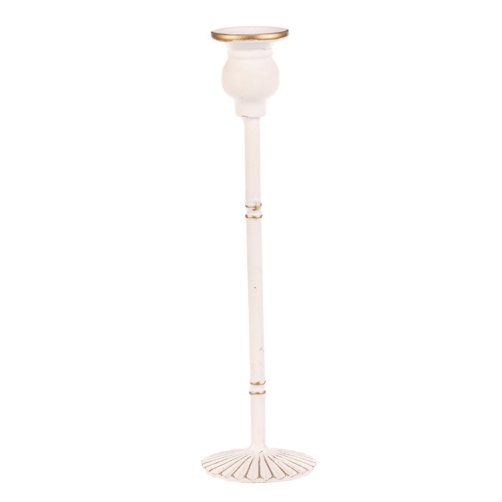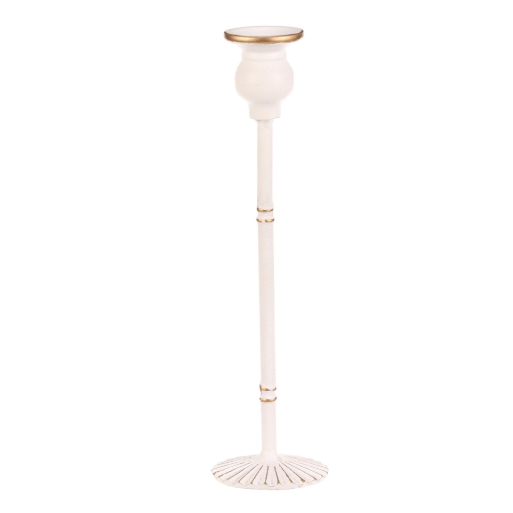 Elegantní kovový svícen v bílé barvě, vysoký 30 cm, je uzpůsoben pro vložení kónické svíčky. Díky své hmotnosti a rozšířenému podstavci je zajištěna jeho stabilita. Skvěle svým zpracováním a jemným odstínem doplní sváteční stůl při Vánocích, svatbách i jiných slavnostních chvílích.