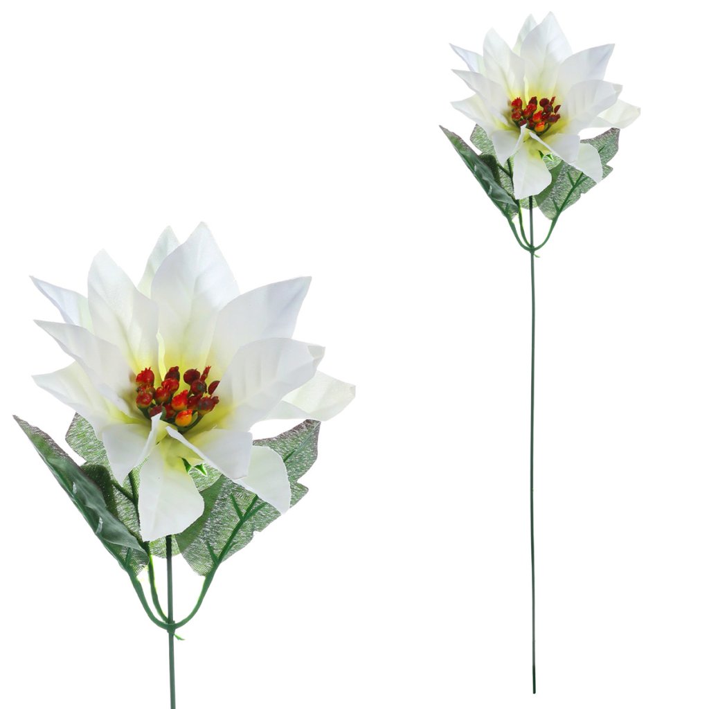 Rádi byste osvěžili vaši vánoční výzdobu novou květinovou dekorací, která vypadá působivě, dlouho vydrží a zároveň je svým barevným pojetím vhodná pro takové období? Elegantním řešením bude právě bílá jednohlavá vánoční růže, která obohatí sváteční interiér svým originálním provedením a dekorem. Je skvělé, že tato nádherná umělá rostlina nikdy neuvadne a může přinášet potěšení svým půvabem ve stejné intenzitě každý rok. Nechte ji vyniknout třeba v krásné váze na svátečně prostřeném stole, či jiném viditelném místě, kde bude vynikat a dělat radost vám i vašim návštěvníkům. Naše nabídka zahrnuje mnoho dalších umělých květin v závislosti na druhu a barvě, což umožňuje nepřeberné množství variant pro aranžování, a tudíž je jen na fantazii a vkusu každého z nás jaké si vybere.