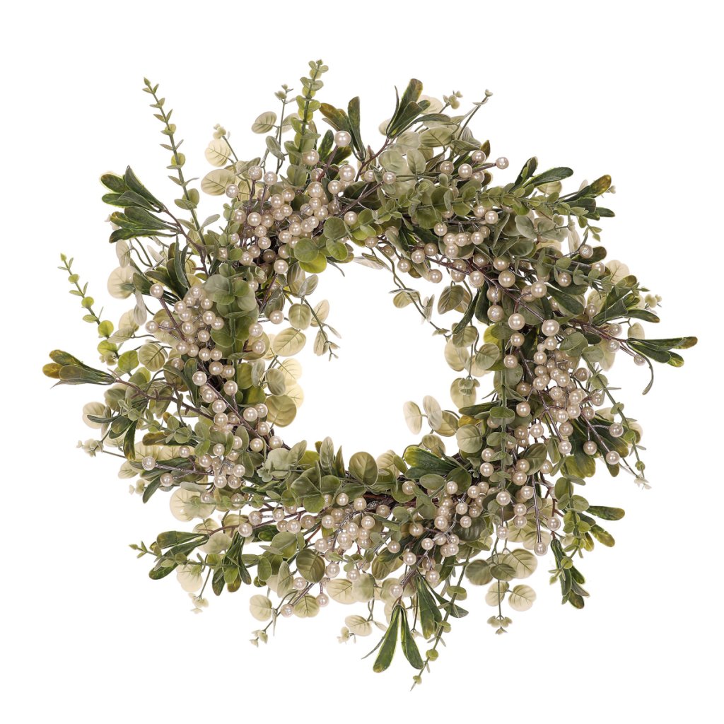 Věnec zelený (ø50 cm) s bobulemi - barva bílá perleť
