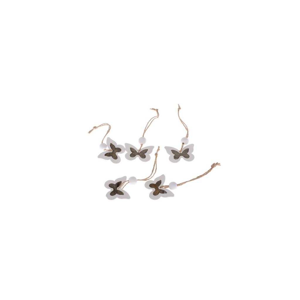 Závěsná dřevěná dekorace - motýlek - sada 5ks
