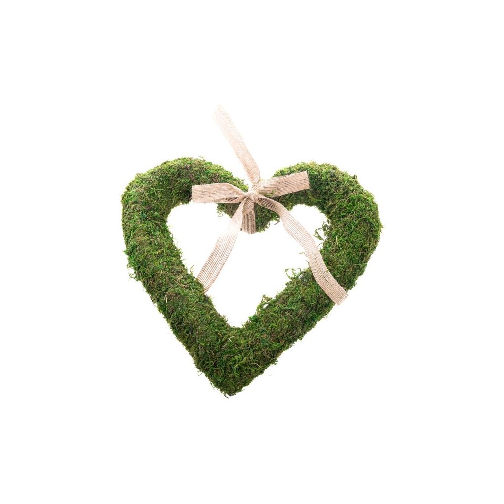 Závěsné srdce (mech) s růžovou mašlí