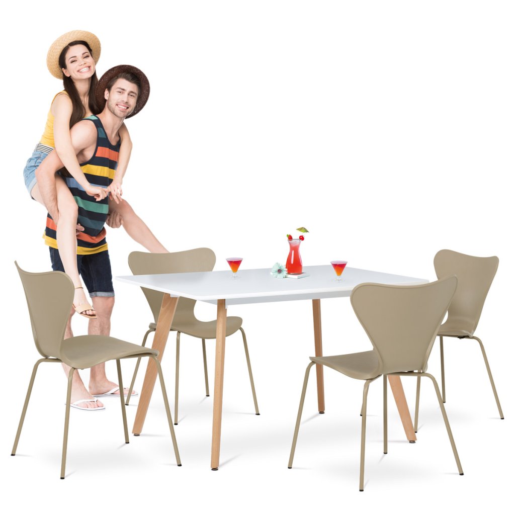 Jídelní židle značky Autronic v barvě cappuccino nabízí elegantní vzhled, který dokonale zapadne do každého interiéru. Plastový sedák je snadno udržovatelný, což zajišťuje dlouhou životnost a čistotu. Stabilitu a pevnost poskytují pevné kovové nohy. Díky svému čistému designu šetří prostor a přispívá k modernímu dojmu vaší jídelny. Tato židle je ideální volbou pro pohodlné stolování bez kompromisů v kvalitě a stylu.
