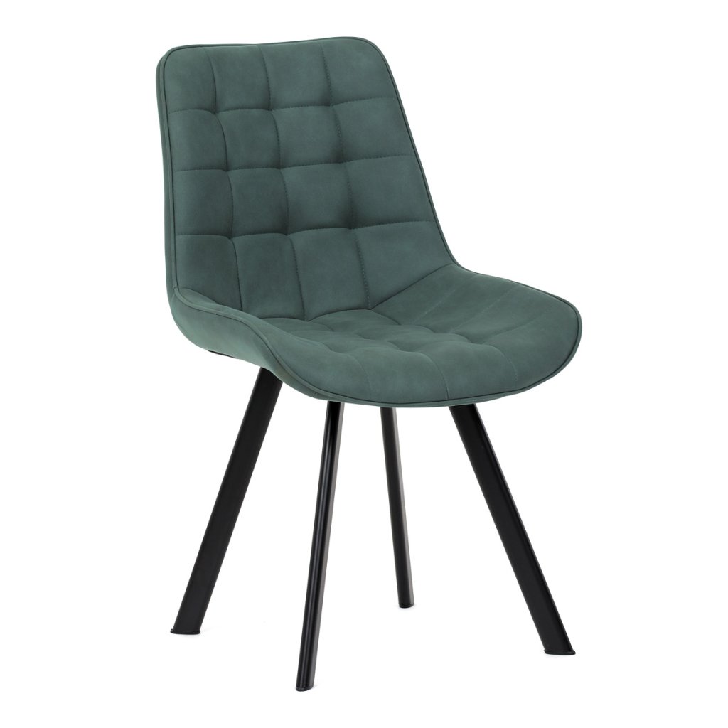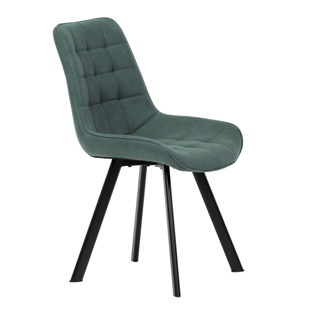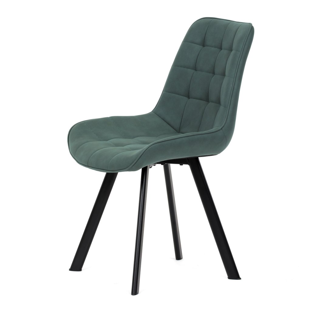 Židle jídelní, zelená látka v dekoru broušené kůže, černý kov
