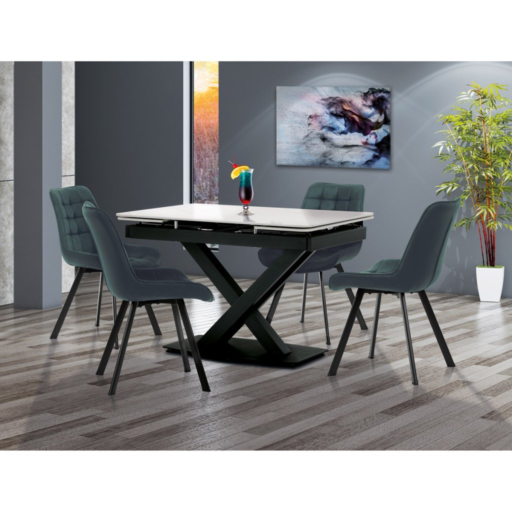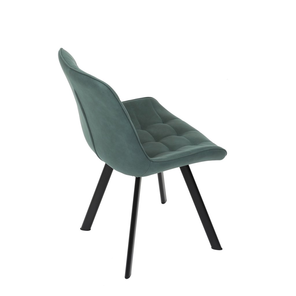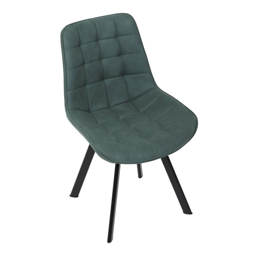 Židle jídelní, zelená látka v dekoru broušené kůže, černý kov
